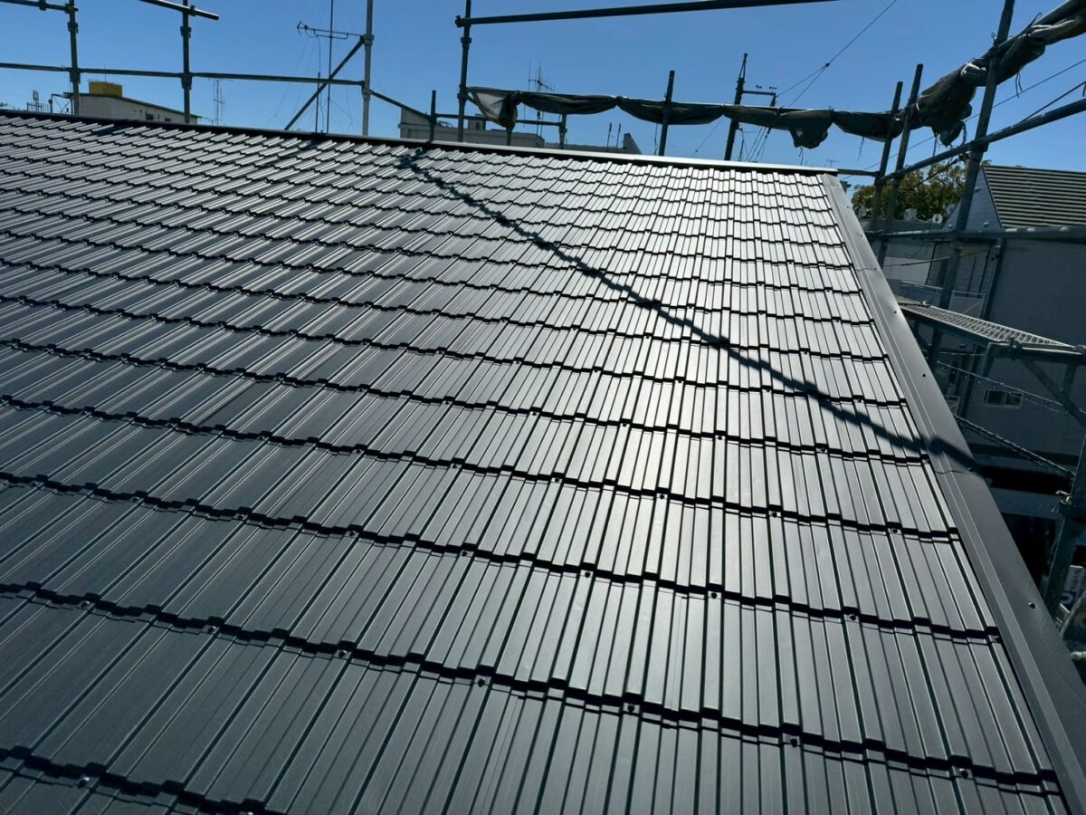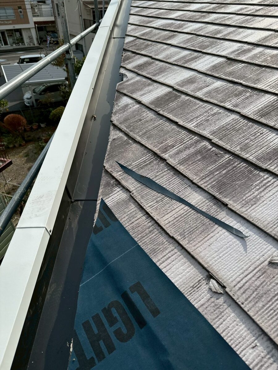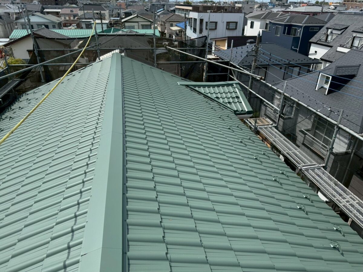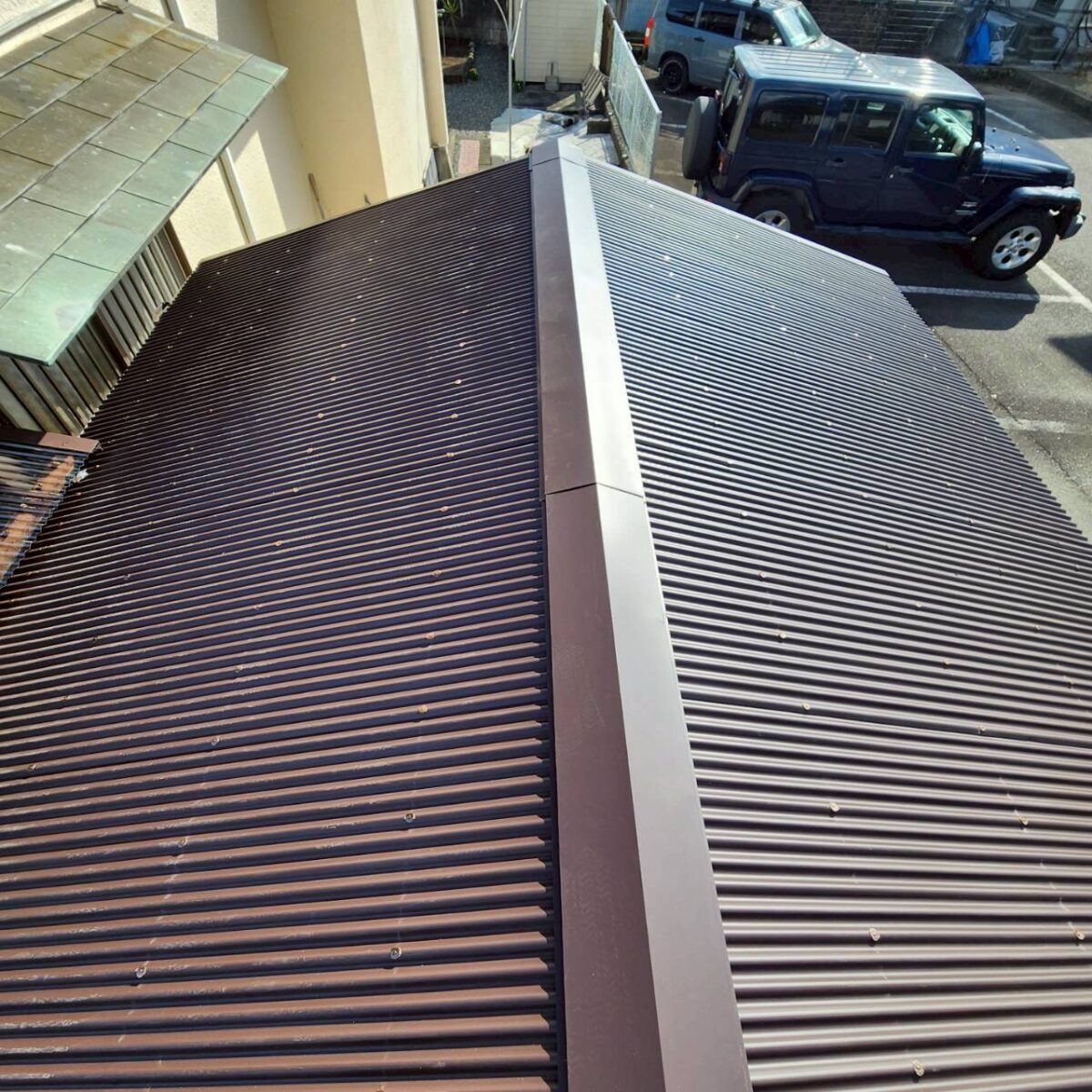 屋根を新しい屋根材に張り替える屋根の葺き替え工事。注意点としては、現在の屋根材がアスベストを含む場合はアスベスト除去費用が高くなるため、カバー工法をオススメしています。