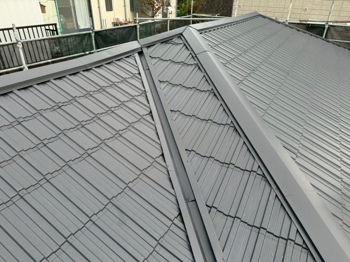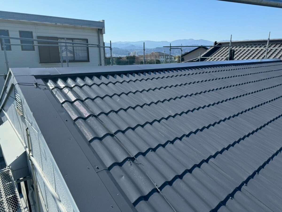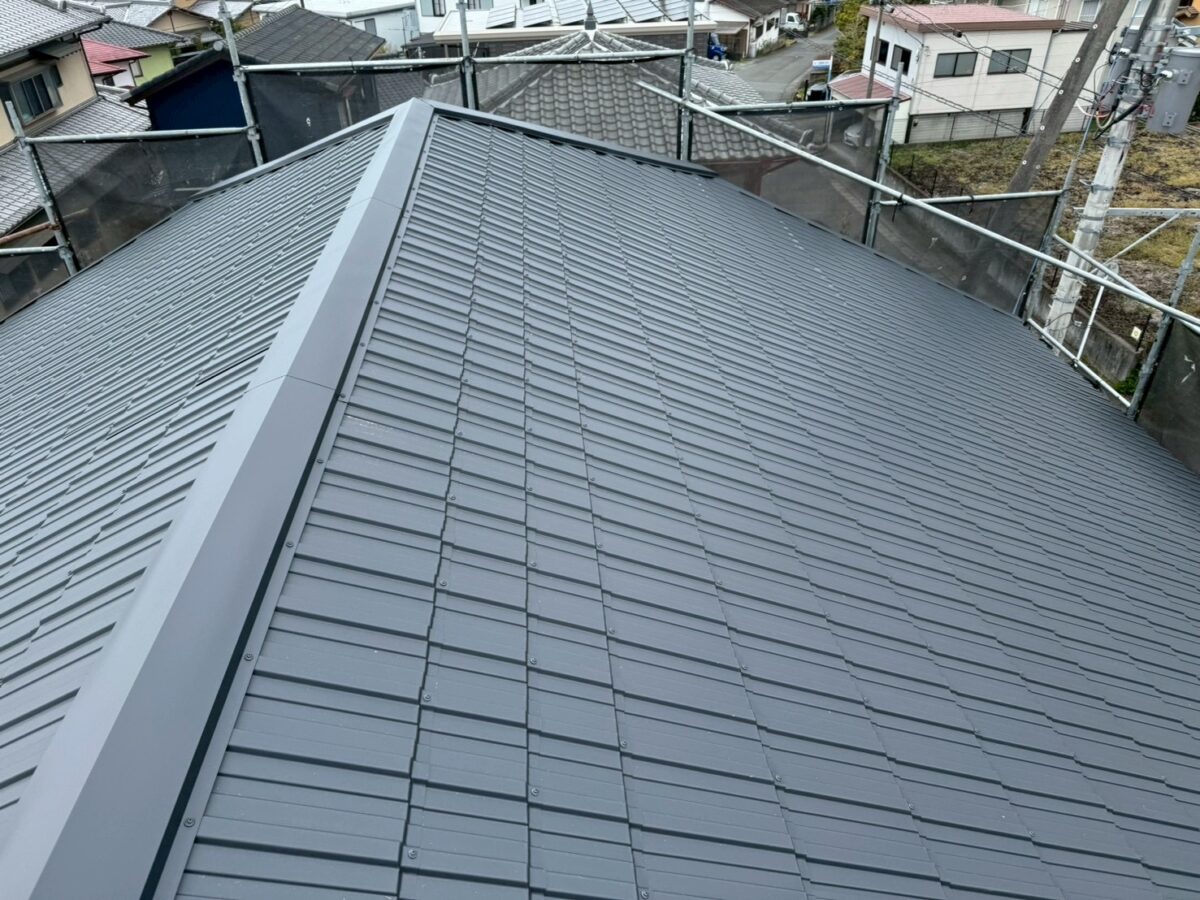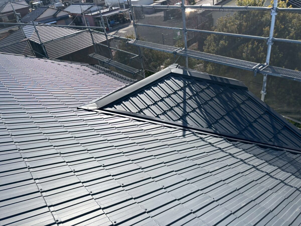 屋根を新しい屋根材に張り替える屋根の葺き替え工事。注意点としては、現在の屋根材がアスベストを含む場合はアスベスト除去費用が高くなるため、カバー工法をオススメしています。