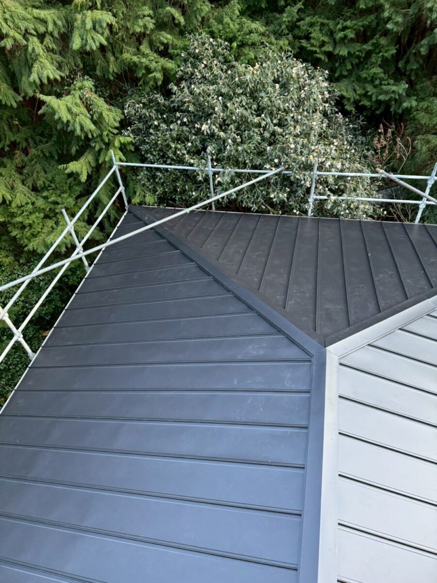 既存の屋根材の上に、軽量金属屋根材をかぶせる屋根カバー工法。葺き替えと比較して、費用を抑えて屋根のリフォームができます。金属屋根工事技師の渡邉が、設計、監督いたします。