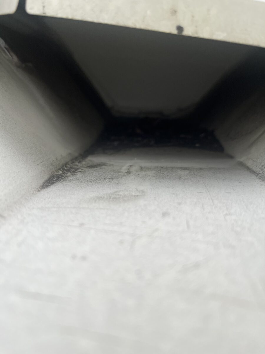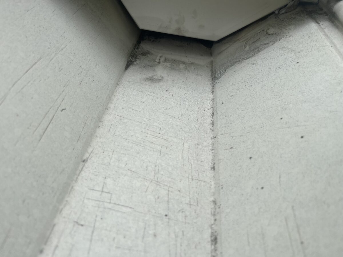 折板屋根には水上部分に雨押さえが付いていて屋根の形の板金板があります、それをエプロン面戸と言います、その奥が毎回雨漏りの原因となる止め面戸が隠れています、画像の1番下ですが、これは折板の断面部分に蓋をする様な形で室内に水が行かないように嵌めるのですが止水はコーキングのみです、なのでコーキングが剥き出しにならない様に手前のエプロン面戸で隠すのですが20年位経つと止め面戸のコーキングが劣化して雨漏りの原因になる事が非常に多いです、折板の水上は止め面戸を使わずに専用の器具で立ち上げる方法もあり、そのやり方なら雨漏りの心配も無いのですが何故かコーキング頼りの止め面戸の使用率は高く雨漏りは続出しています。