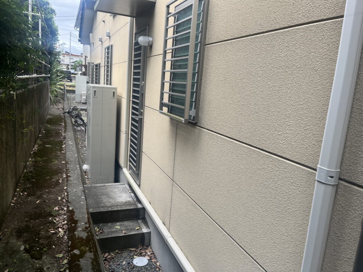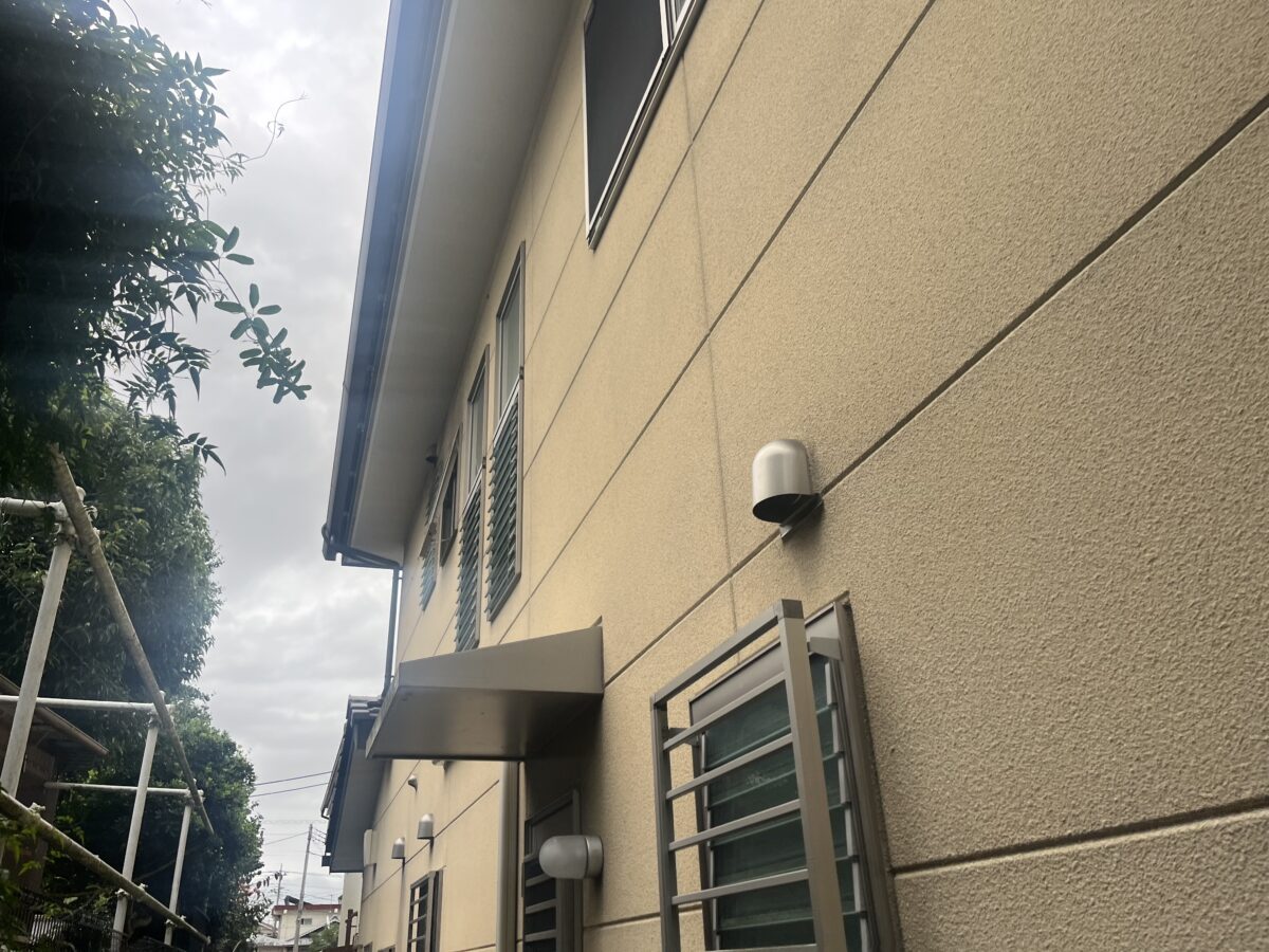 築年数15年位と言う事で伺いましたが、パワーボードの吹き付けの外壁なのでコーキングも劣化が少なく外壁も綺麗なので、どうして今回塗装をお考えなのかお客様に伺いましたところ、業者がコーキングのワレの部分から水が浸入するとか塗装しないと外壁がダメになると何社にも言われて、すっかりやらなければ家が駄目なんだと思ってしまったとの事です、私はそれだったら心配有りませんので塗装しなくても大丈夫ですよとお伝えしましたら、それは良かった助かりますと言う感じで塗装は辞めようとなりました、塗装しなければ持たない様な外壁材、屋根材は存在しませんのでただただ塗装工事を取りたいだけのリフォーム業者のいいなりにならない様に注意が必要です。
