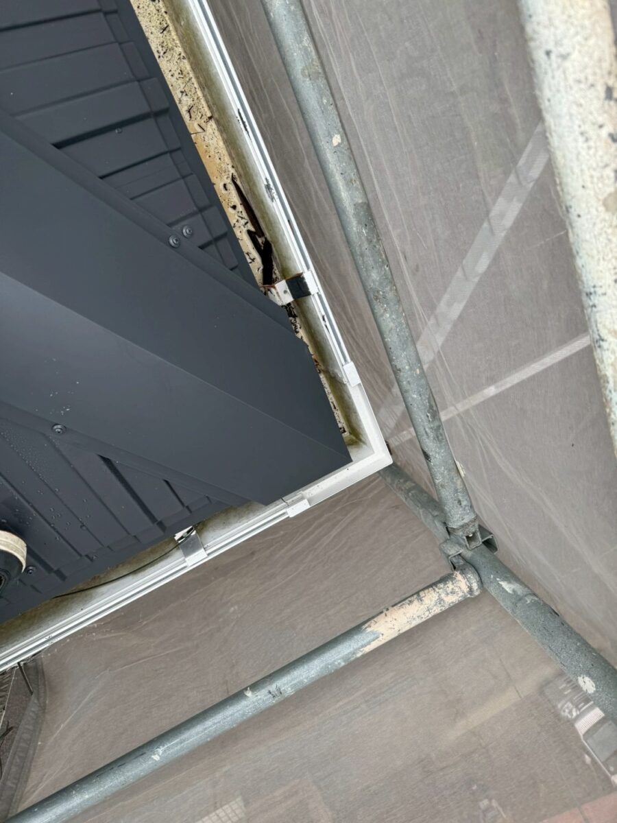 私のお勧め屋根レクトプルーフのご説明なんですが、板金屋根や化粧スレートなどの棟の下地が腐って強風で飛んでしまうなどの懸念点があるのですがレクトプルーフはとても安心です、そもそも縦方向に溝があるデザインなので雨水が横走りしないので降り棟の下敷き板金も私的には必要無いと思いますが標準仕様なので取り付けます、木下地は防水の為のケミカル面戸を押さえる為と棟の凹み防止の為だけに入れます、棟板金は屋根材に直接パッキン付きビスで絡める仕組みなので木下地が腐っても棟板金が外れる事は有りません、そもそもレクトプルーフは縦溝が深いので雨が降っても木下地は浮いている状態にあり水に接触し難いので腐る心配は極めて少ないです、この腐りを心配して人工木材を使用する業者もいますが人工木材は熱に弱く高温の屋根の上では劣化し易いので良く無いです、なので棟の収まり的にもベストな屋根材だと言えます。