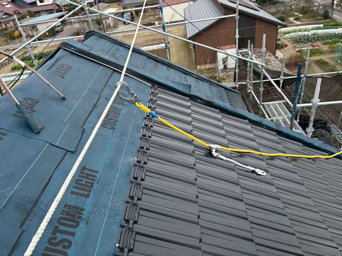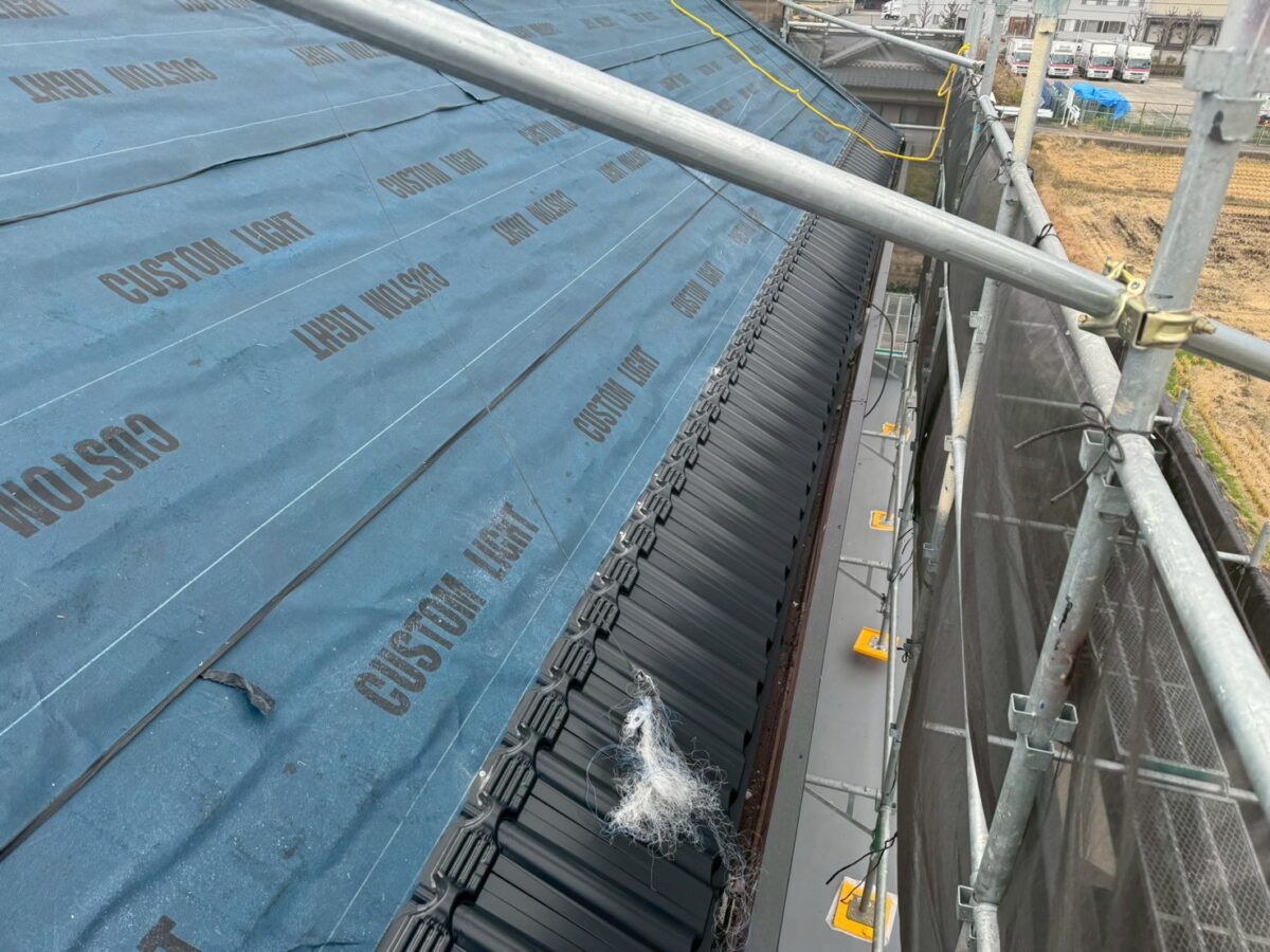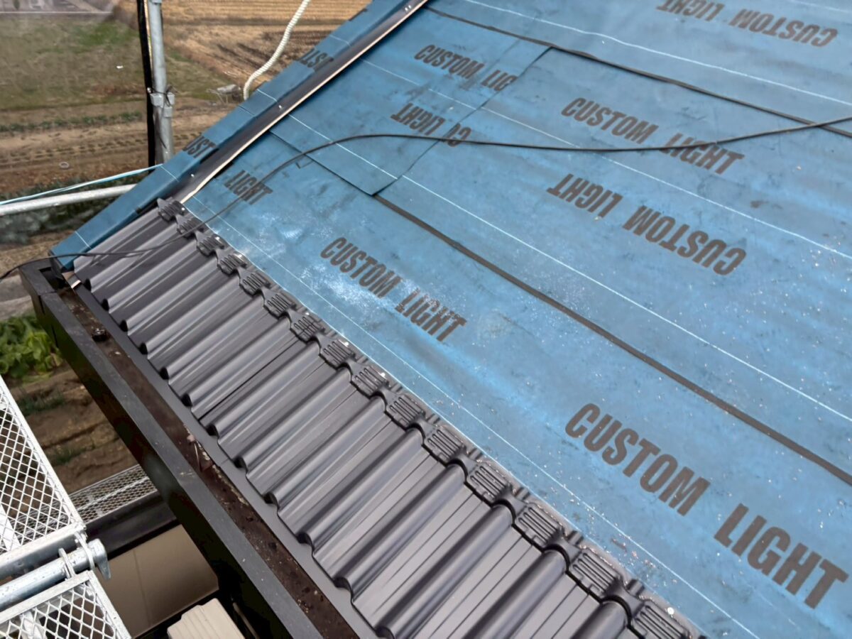 昨日のブログの続きで午後の作業となります、今回は私達も初施工のマックスハイプルーフで厚さも厚く表面のフッ素含有量も多い商品で、なんといっても立体感が違います、施工も多少違ってきますので施工書を確認しながらの作業となります、1番大きな違いは軒先の屋根材が本体の屋根材と先端の形が違うので間違えると大変な事となります、今回の現場はケラバが元々特殊でしたのでケラバは同質の板金コイルを購入し作業場で加工して持ち込んでいます、来年も早々にハイプルーフの御予約は入っておりますが、今回の現場は初施工なので、とにかく仕上がりが楽しみです。