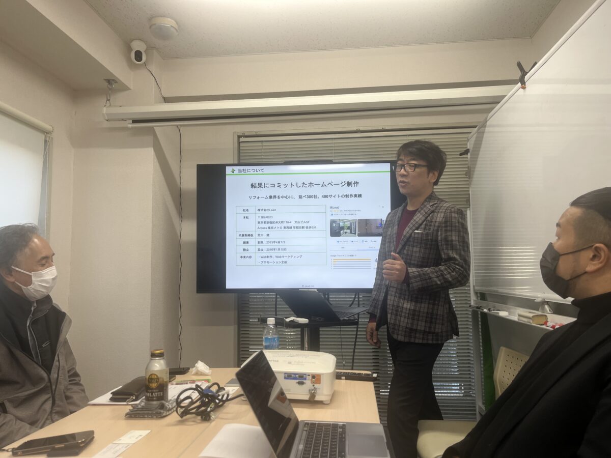 毎月恒例の関東支部会に参加させていただきました、今回は主にヒットするブログの書き方をホームページ制作会社リードの荒木社長を御招きして解説して頂きその後はチャットGPTの話題など勉強いたしました、また今回見学と言う形で株式会社キュアビルドの中川社長が参加して下さり、会に入会するかどうかは今日決めなくて良い事をお伝えしてたのですが、会の後半に入会致しますと言う嬉しいお言葉をいただき、また一社新たな仲間が増えとても嬉しかったです、中川社長の感想は笑いもありながら楽しく学べ真剣な部分は真剣で、とても気に入りましたと仰っていて良かったです支部会の後は懇親会で盛り上がり充実した1日となりました。