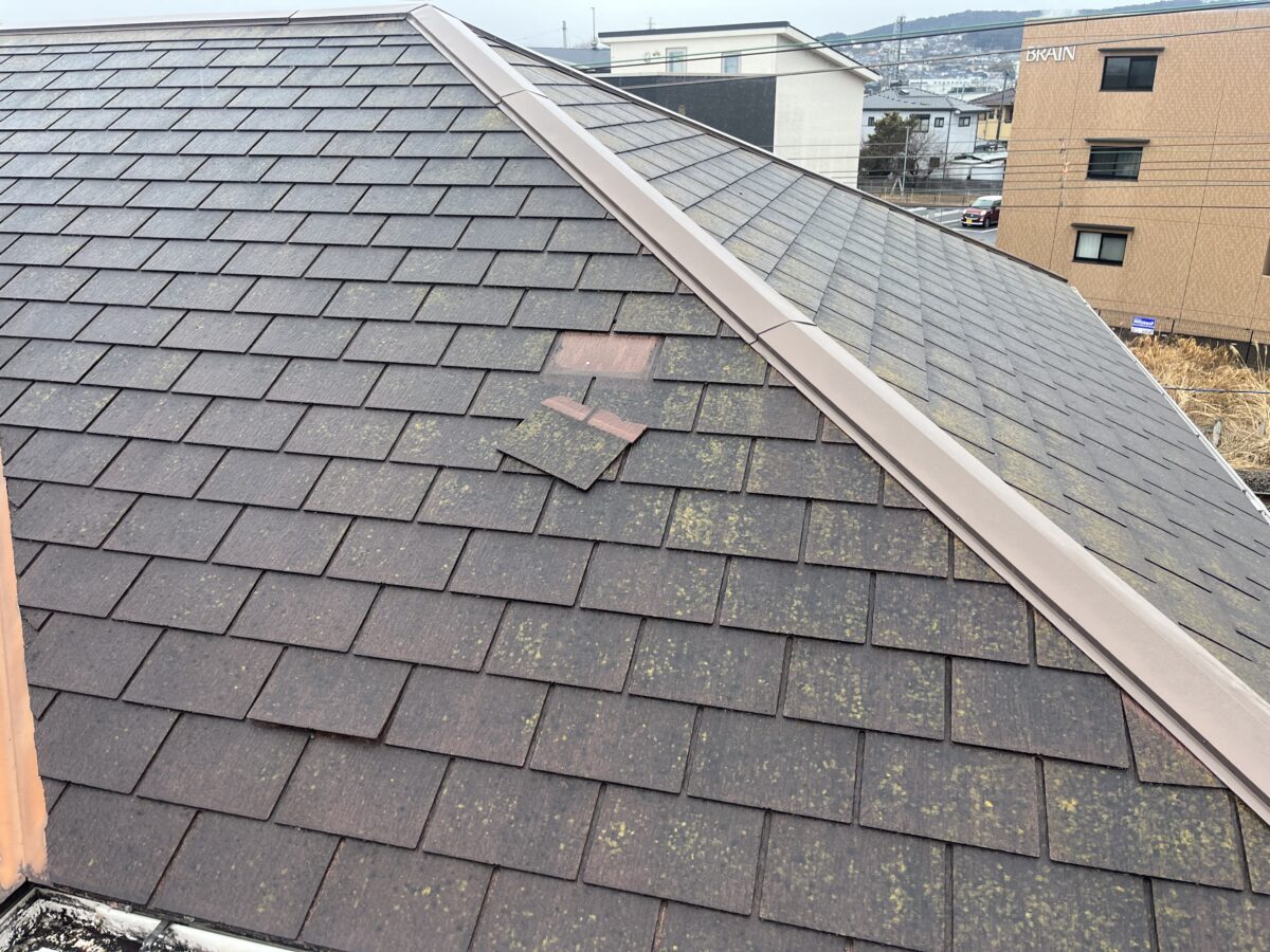質があまり良くなかった化粧スレートが1枚あり、反りが出ていました。