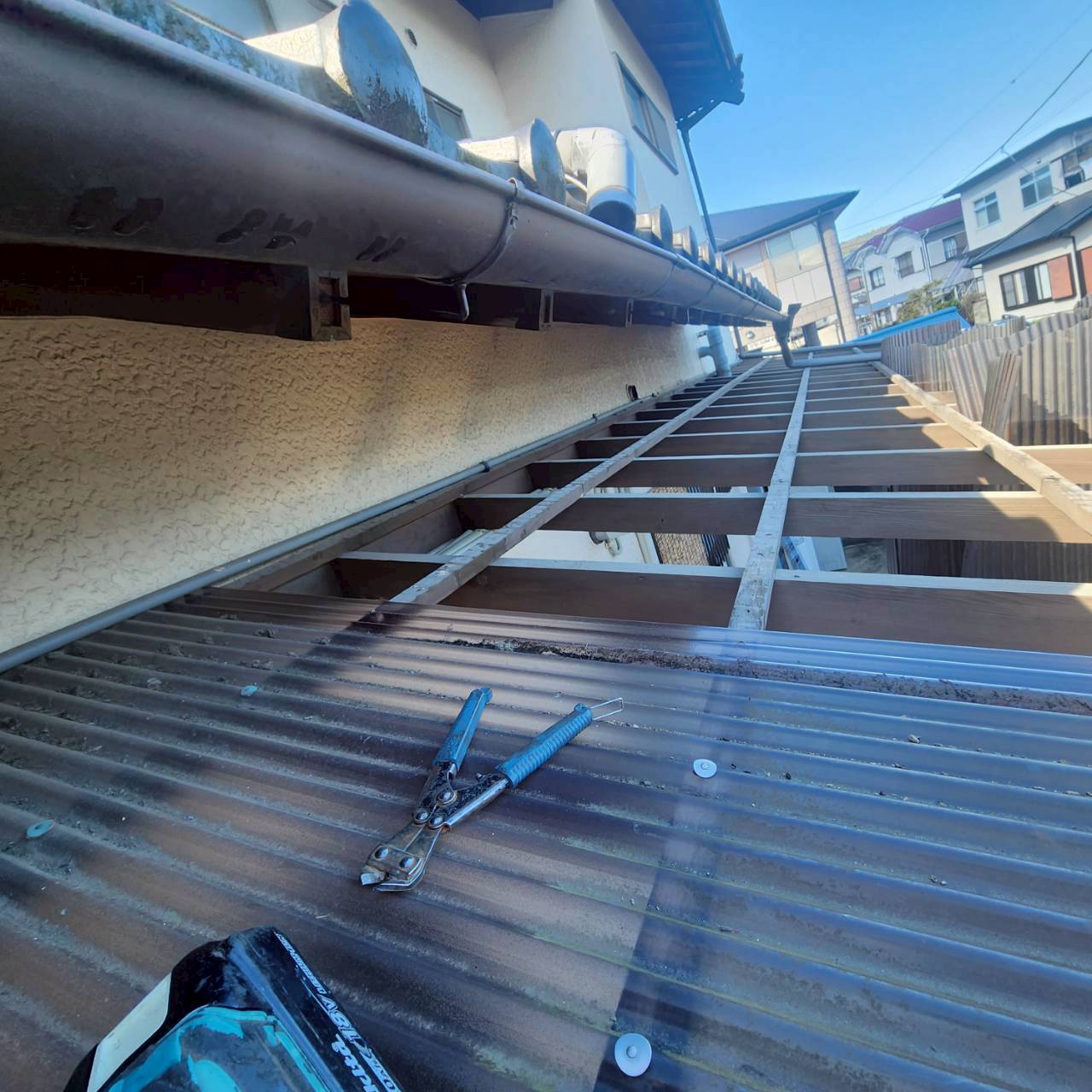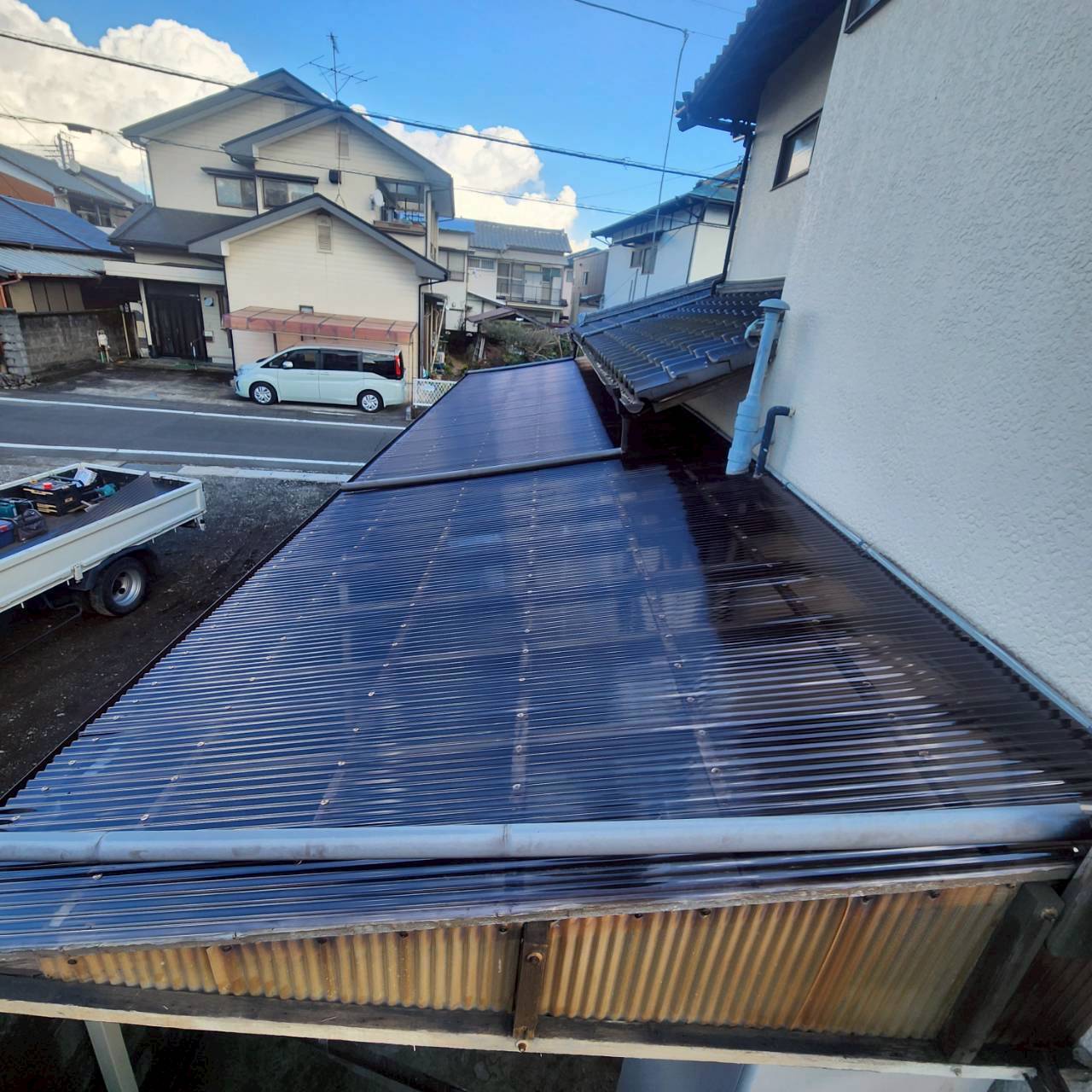 ポリカーボネート波板を取り外し、新しく貼り替えを行いました。