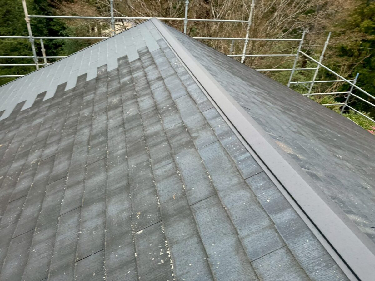 既存の状態を確認すると、10年以上前の雨漏り補修時に棟部分の施工も行われていたようで、棟の下にルーフィングがしっかりと施工されていました。