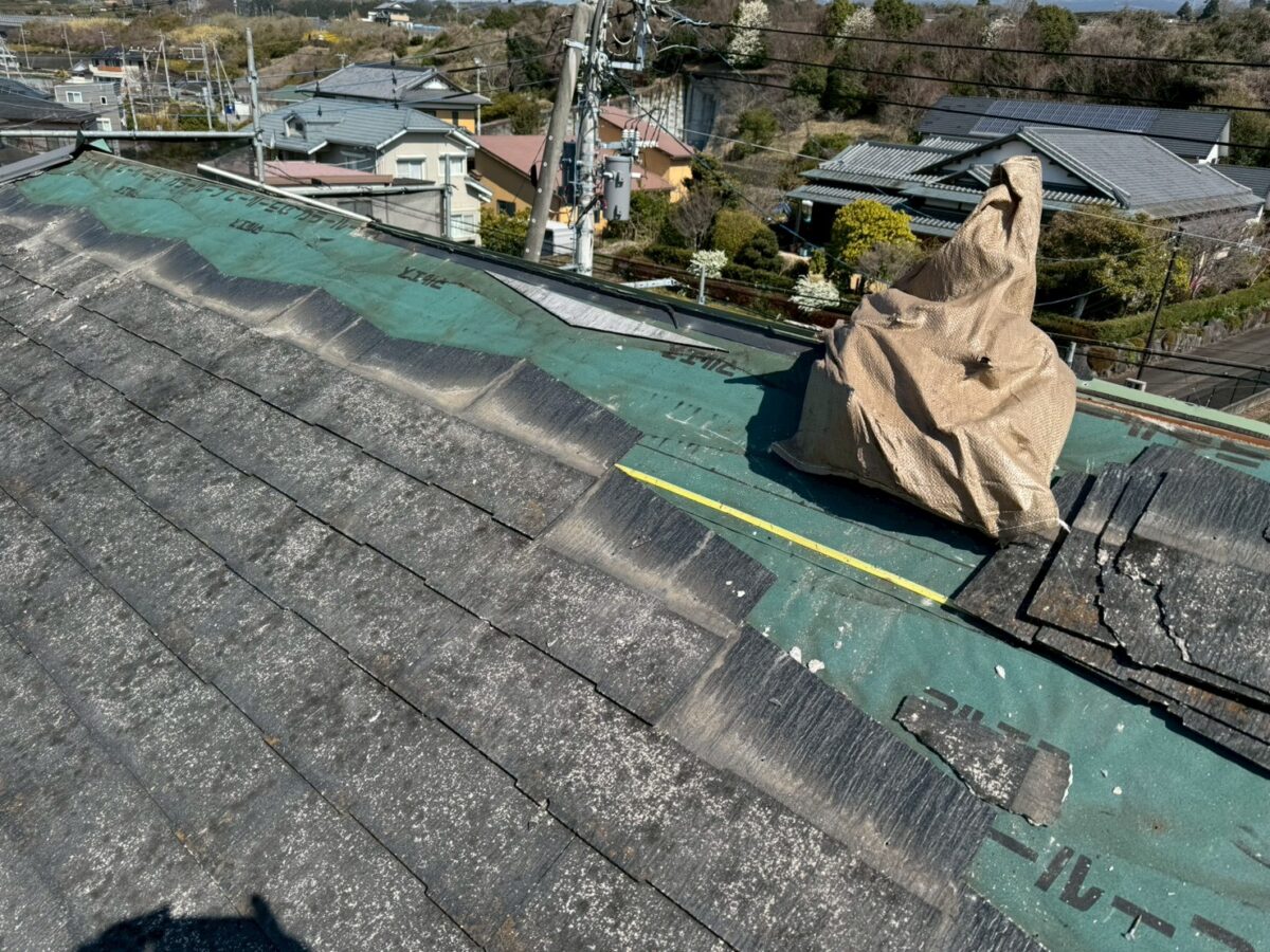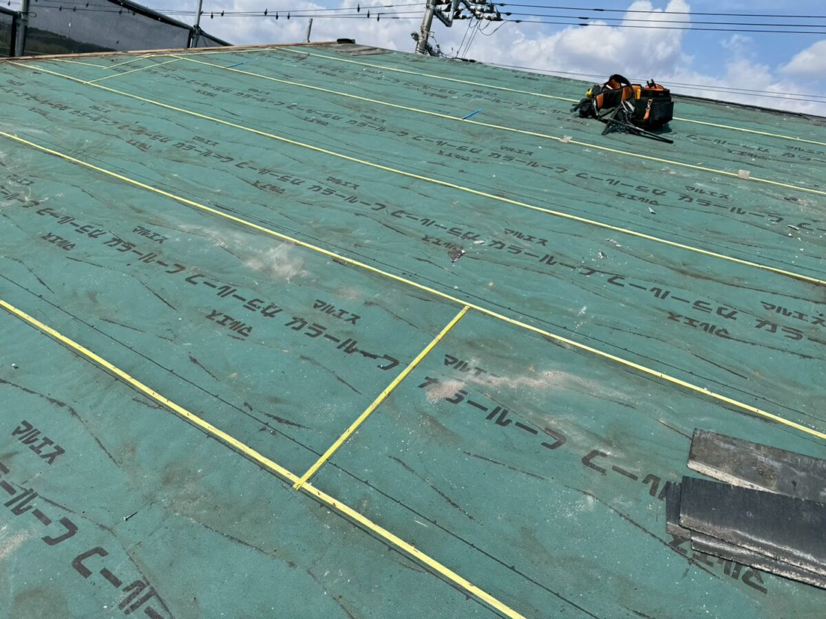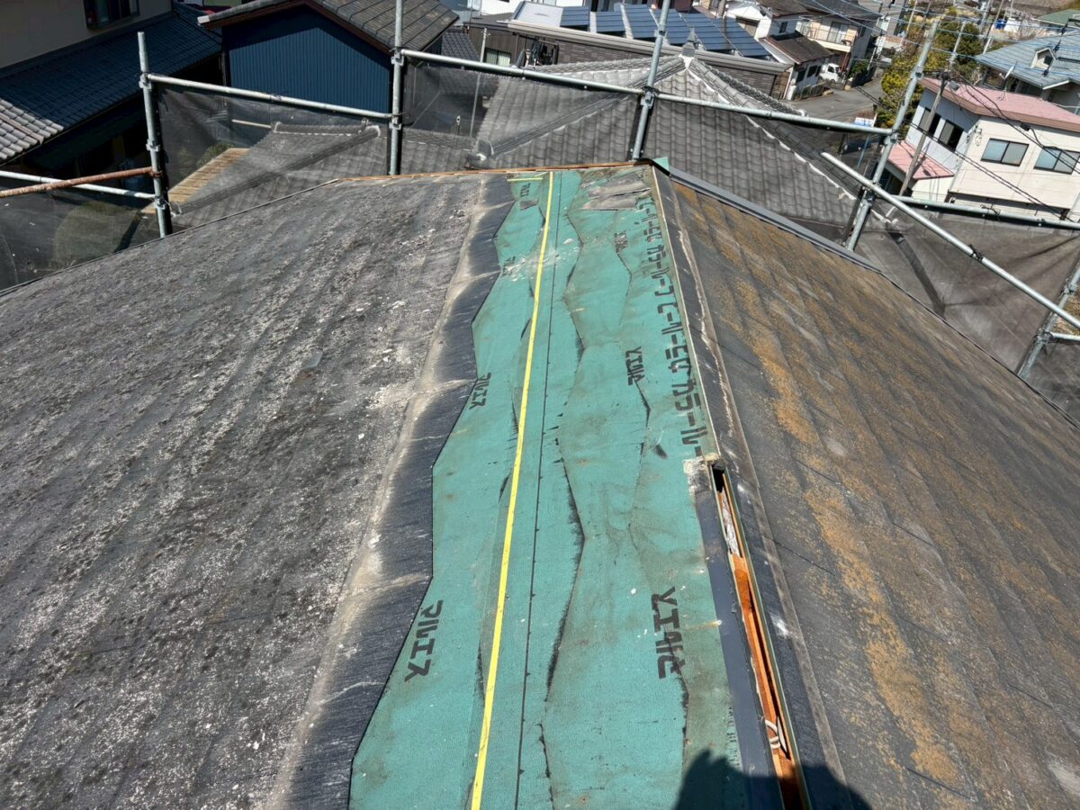 実際にコロニアルを撤去してみると、既存のルーフィングは破れなども少なく、思っていた以上に良好な状態でした。