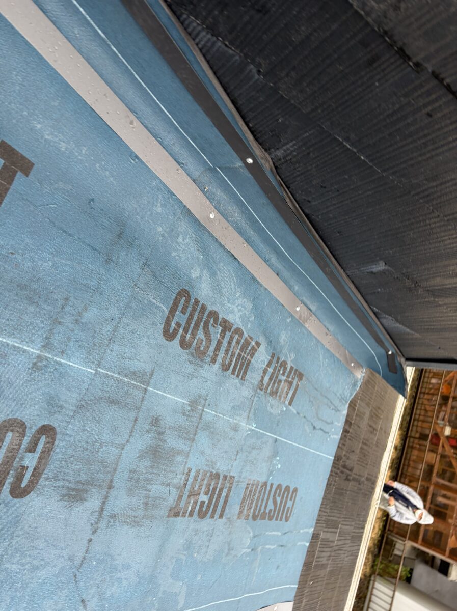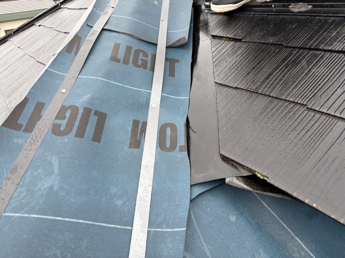 今回は応急処置として、粘着層付きルーフィングを貼る対応を行いました。