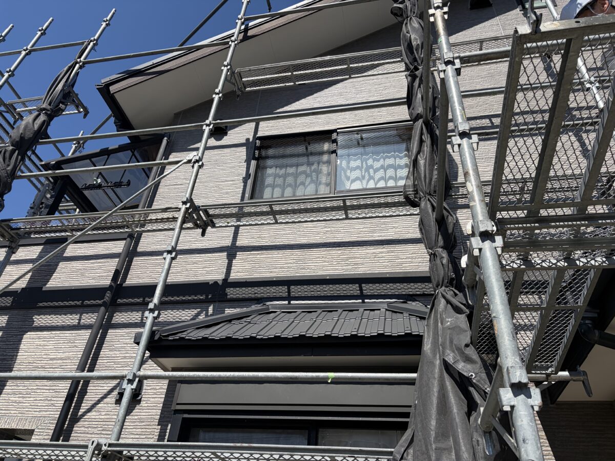 また、こちらのお宅では、なぜか軒天にところどころ強い汚れが見られました。壁は特に汚れていなかったのですが、私たちの職人が家全体の軒天を丁寧に水洗いしました。すると、それだけで建物全体がかなりきれいに見えるようになり、仕上がりの印象がぐっと良くなりました。