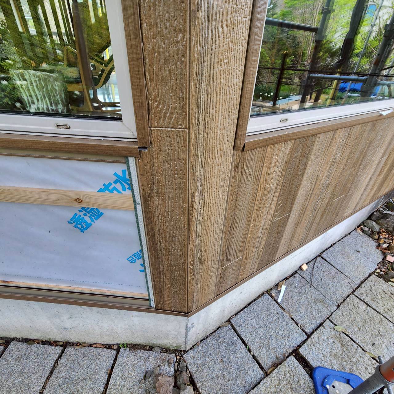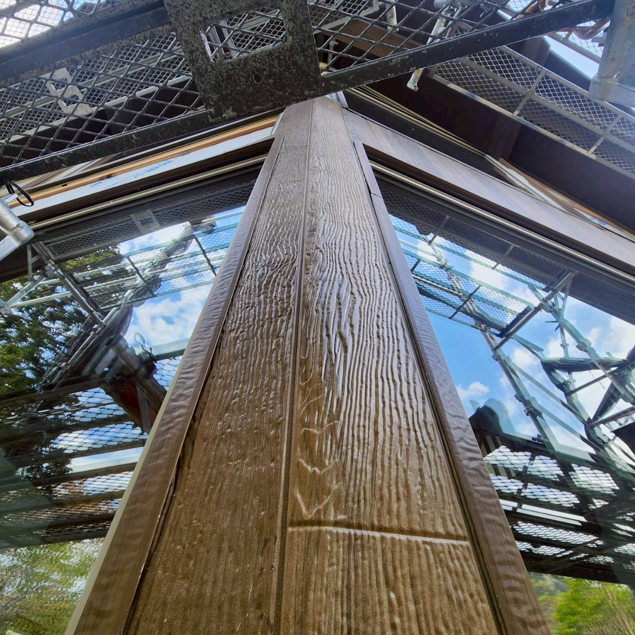 私たちも、2色の木目調で家全体を施工したことは何度かありましたが、このiD塗装の木目調で家全体を施工するのは今回が初めてです。少し貼り出しただけでも、リアルさと豪華さがしっかり伝わってきて、素晴らしい木目調だなと感じました。