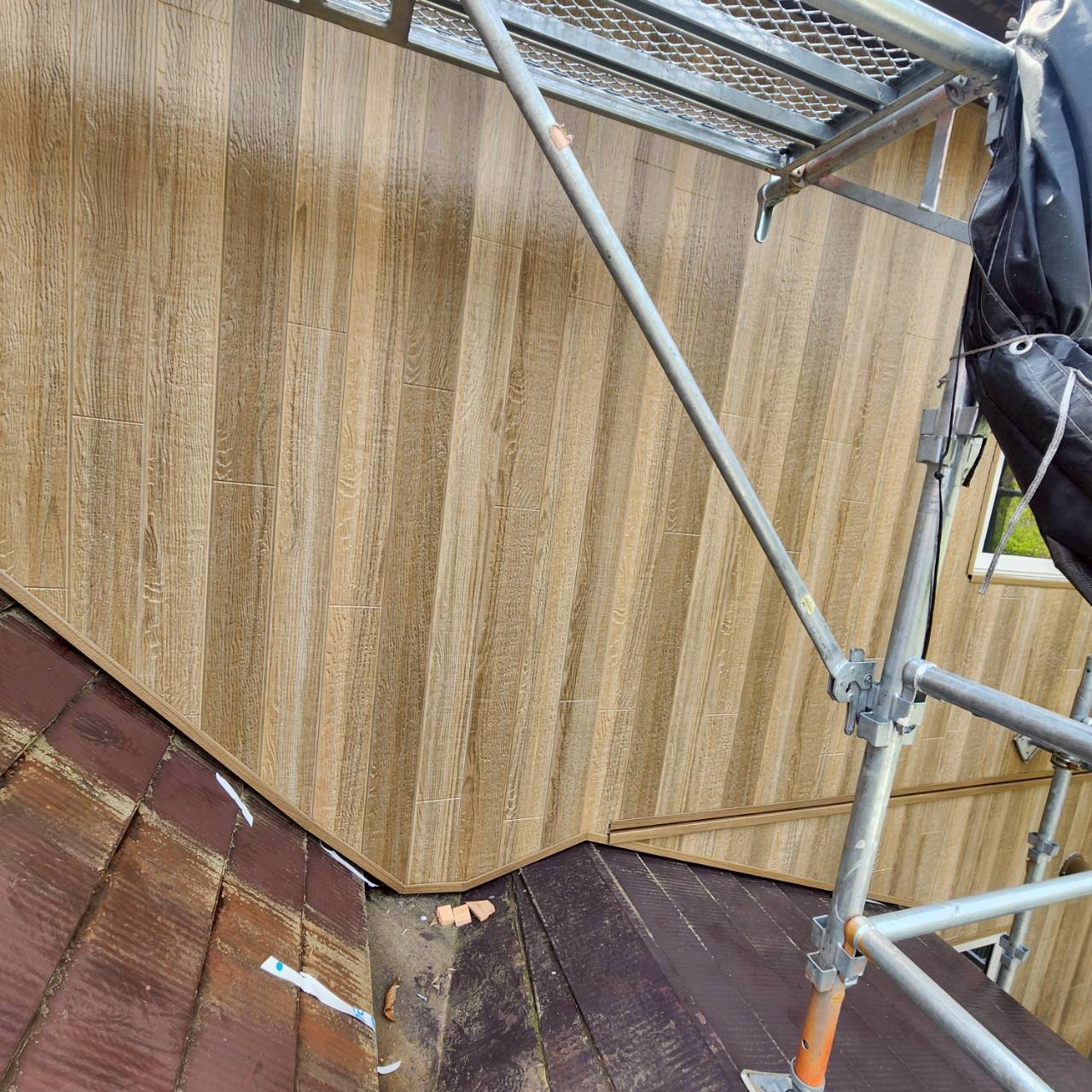 リアルなiD塗装の木目調金属サイディングの本体を貼り出しました。