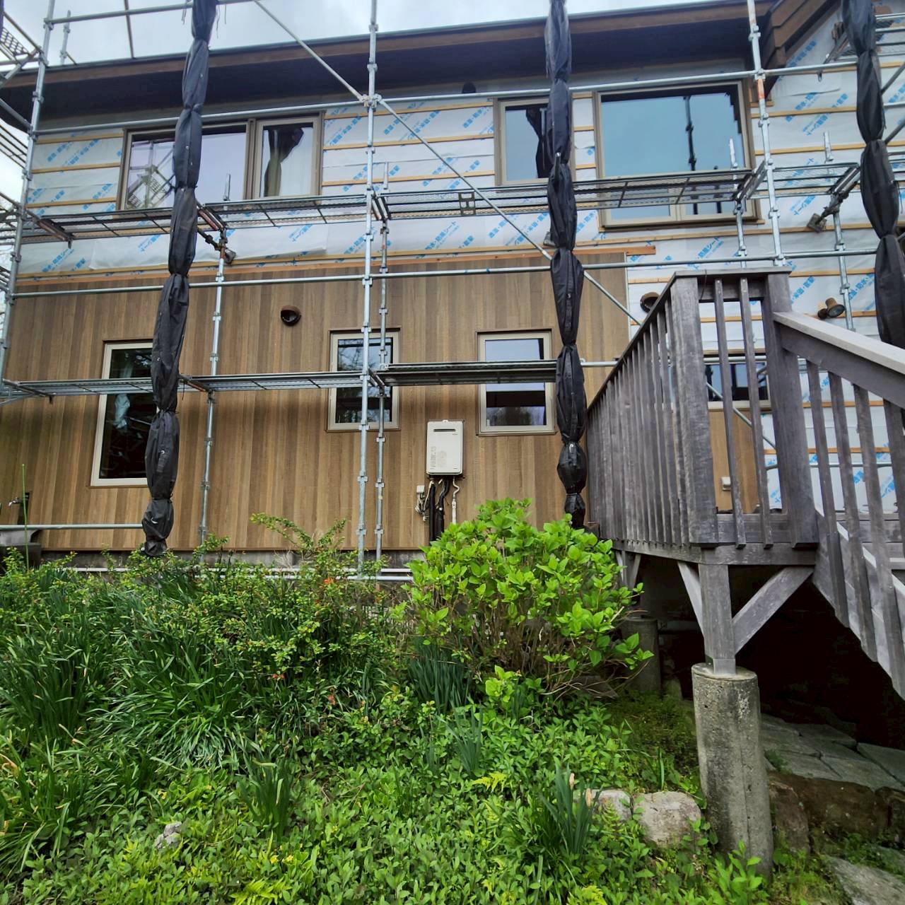 見たところ、外壁材は8割ほど張り終わっており、完成までもう一息というところまで来ています。