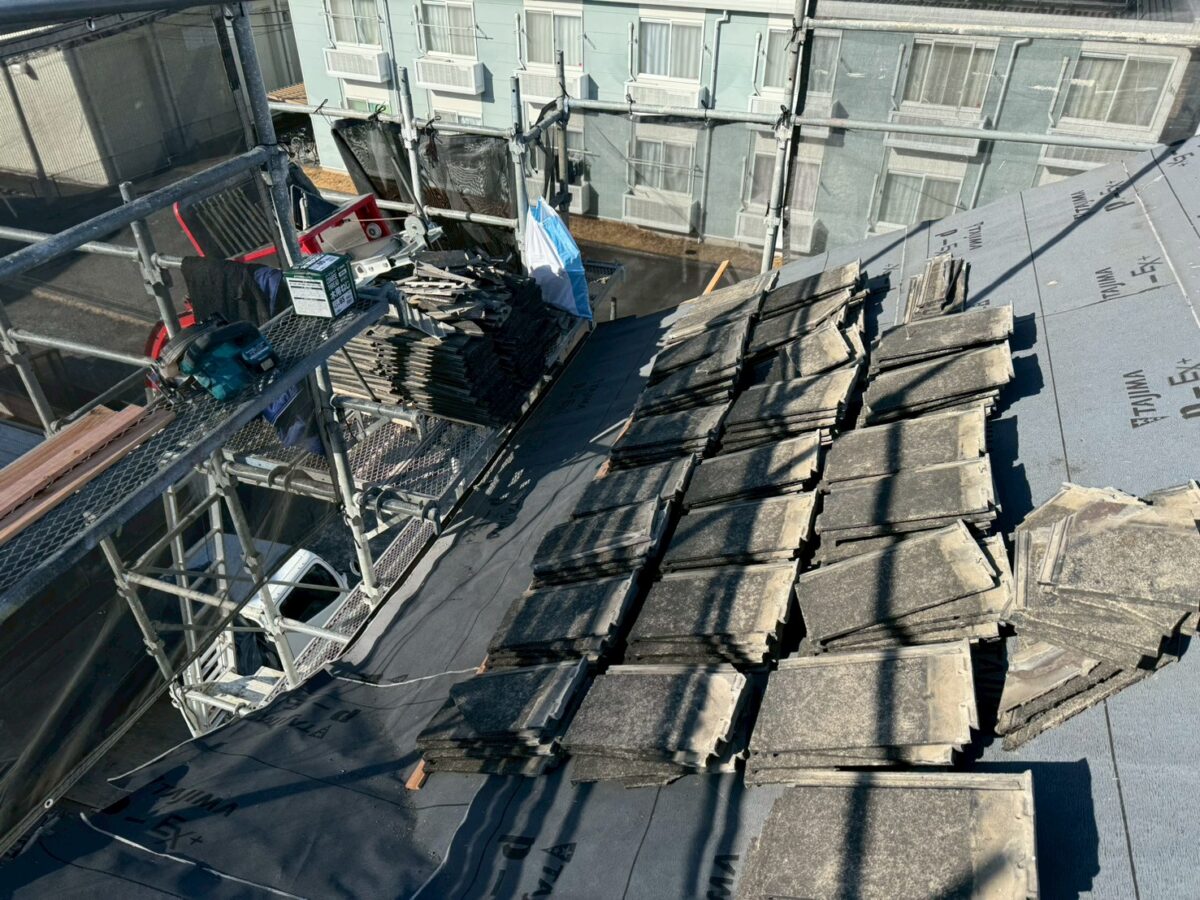 瓦の撤去作業