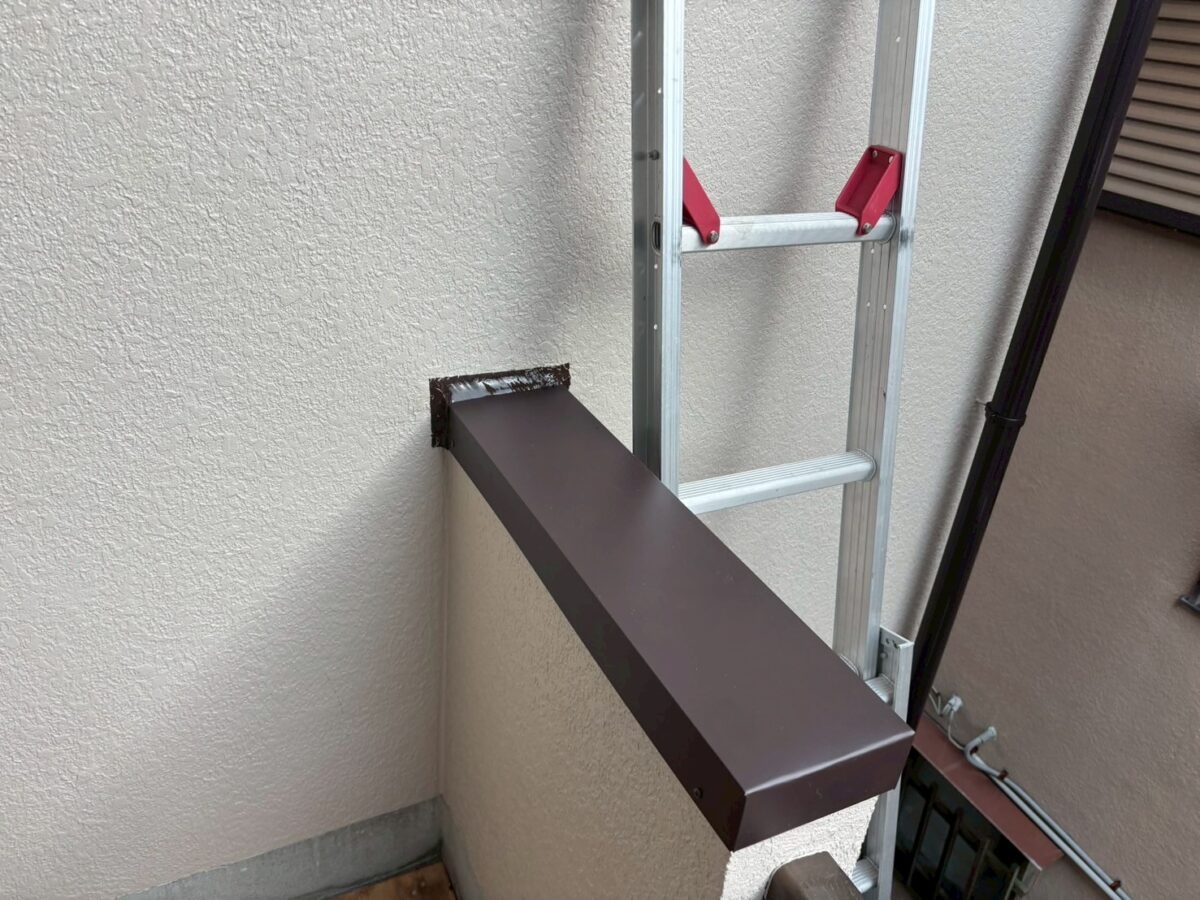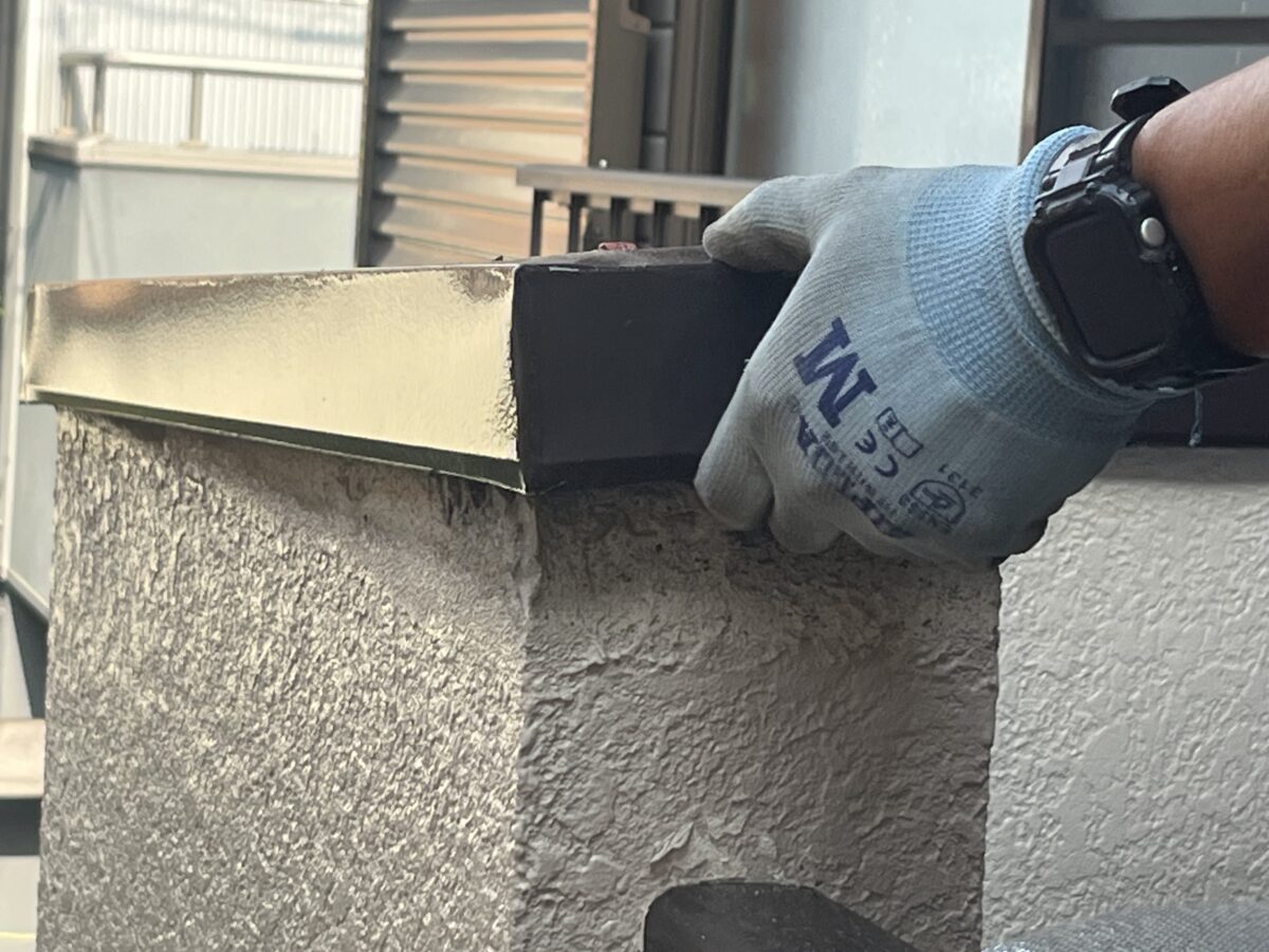 笠木板金も上から釘を打っていましたので板金一枚で仕上げているので今回の雨漏りとは関係有りませんでしたが一旦撤去し笠木板金下地と笠木板金カバーの二重構造でやり直しました。