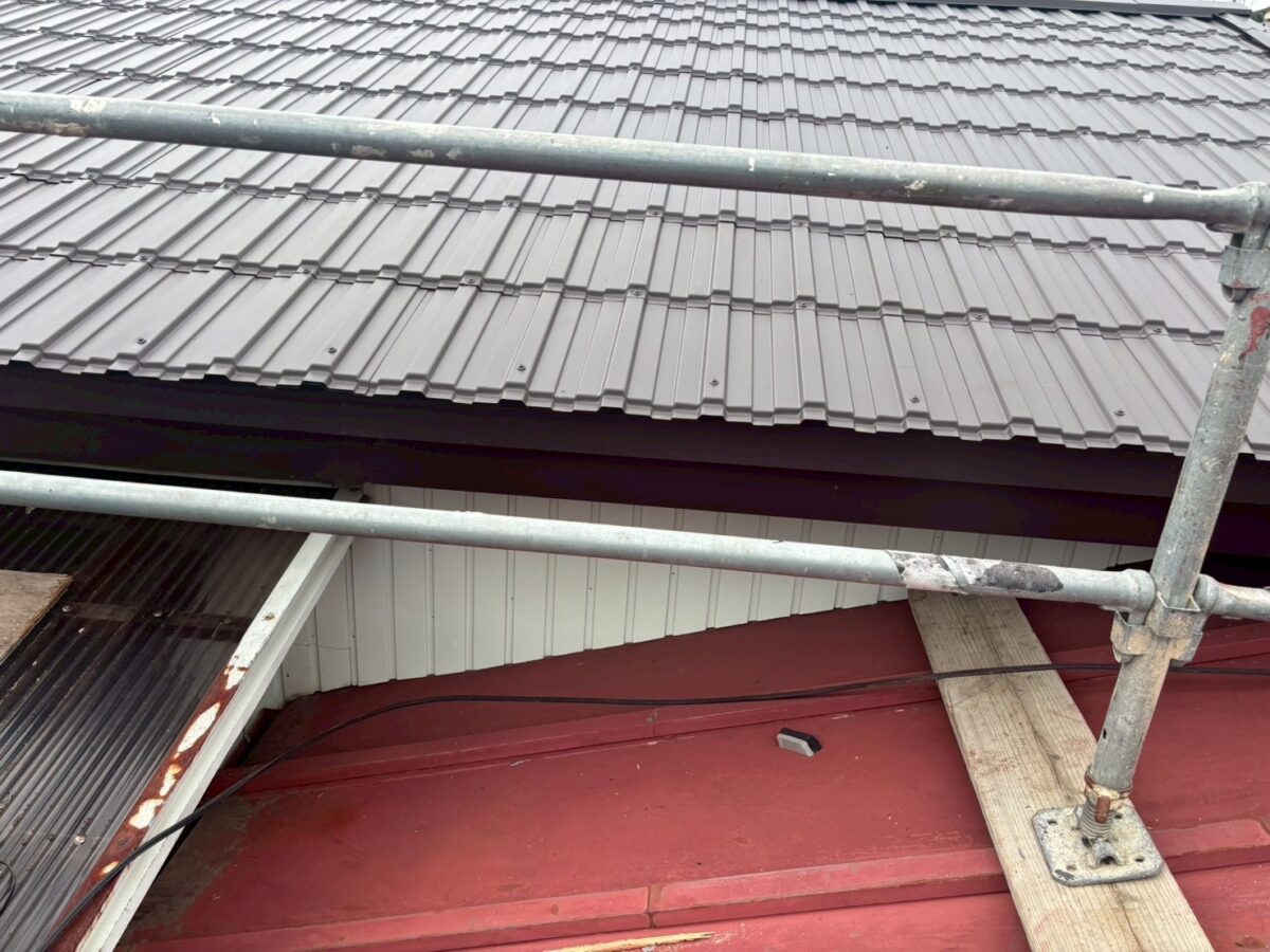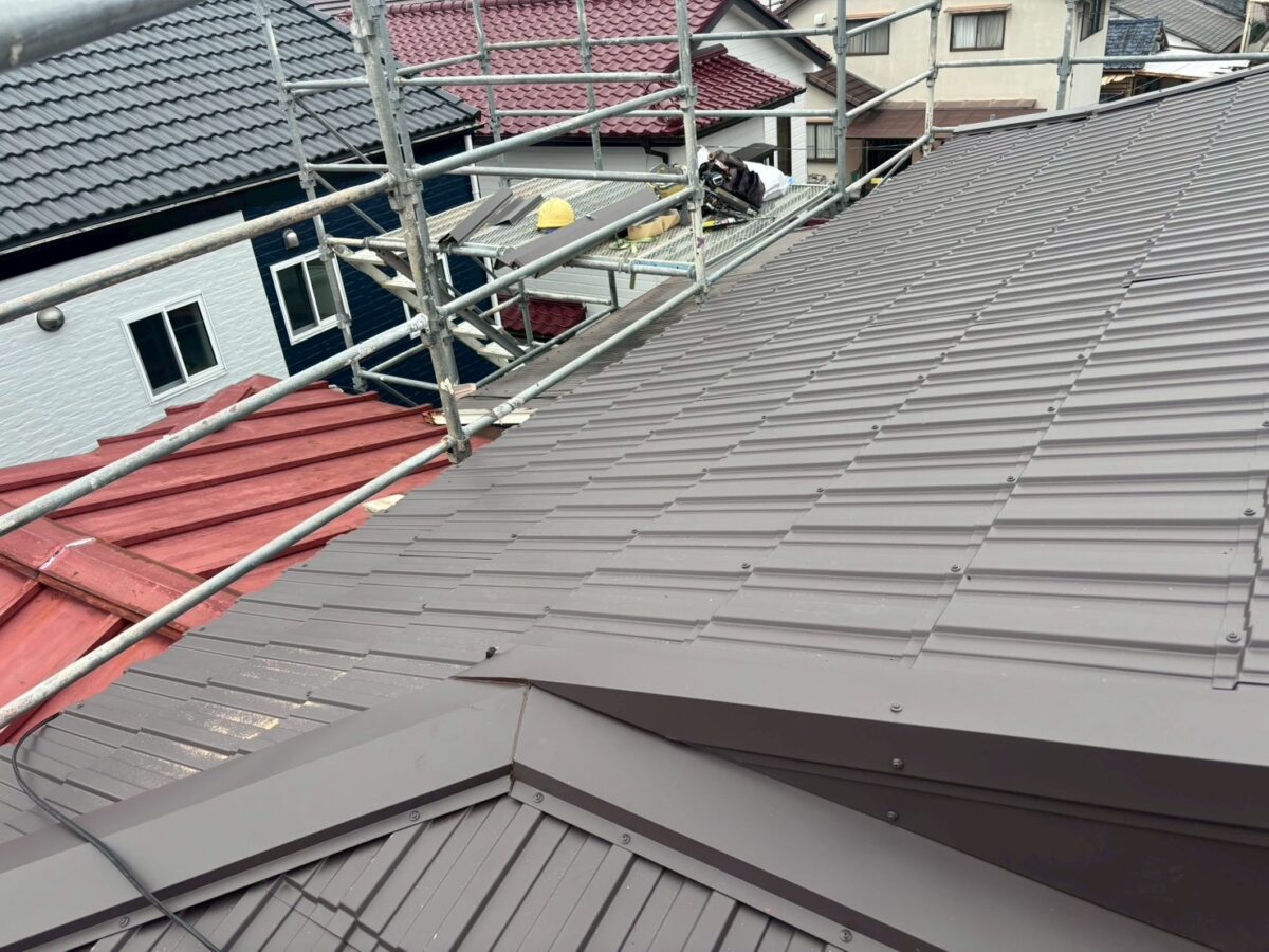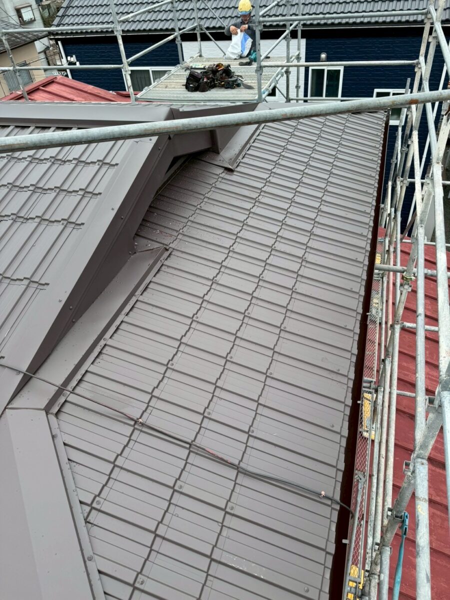 厚みもあり空気層も確保出来るレクトプルーフを施工するとデザイン性から雰囲気がガラッと変わります、表面加工もフッ素塗装なので色褪せにも強く長い間美しい状態をキープ出来ます、ただ残念なのが本体色が茶色と黒の2種類しか無いので選択肢が少ないです、もう一段階金額的に上がるマックスハイプルーフならば4色あるのですが工事費が1割程上がってしまうので、どうしても皆さんレクトプルーフを選択されます。