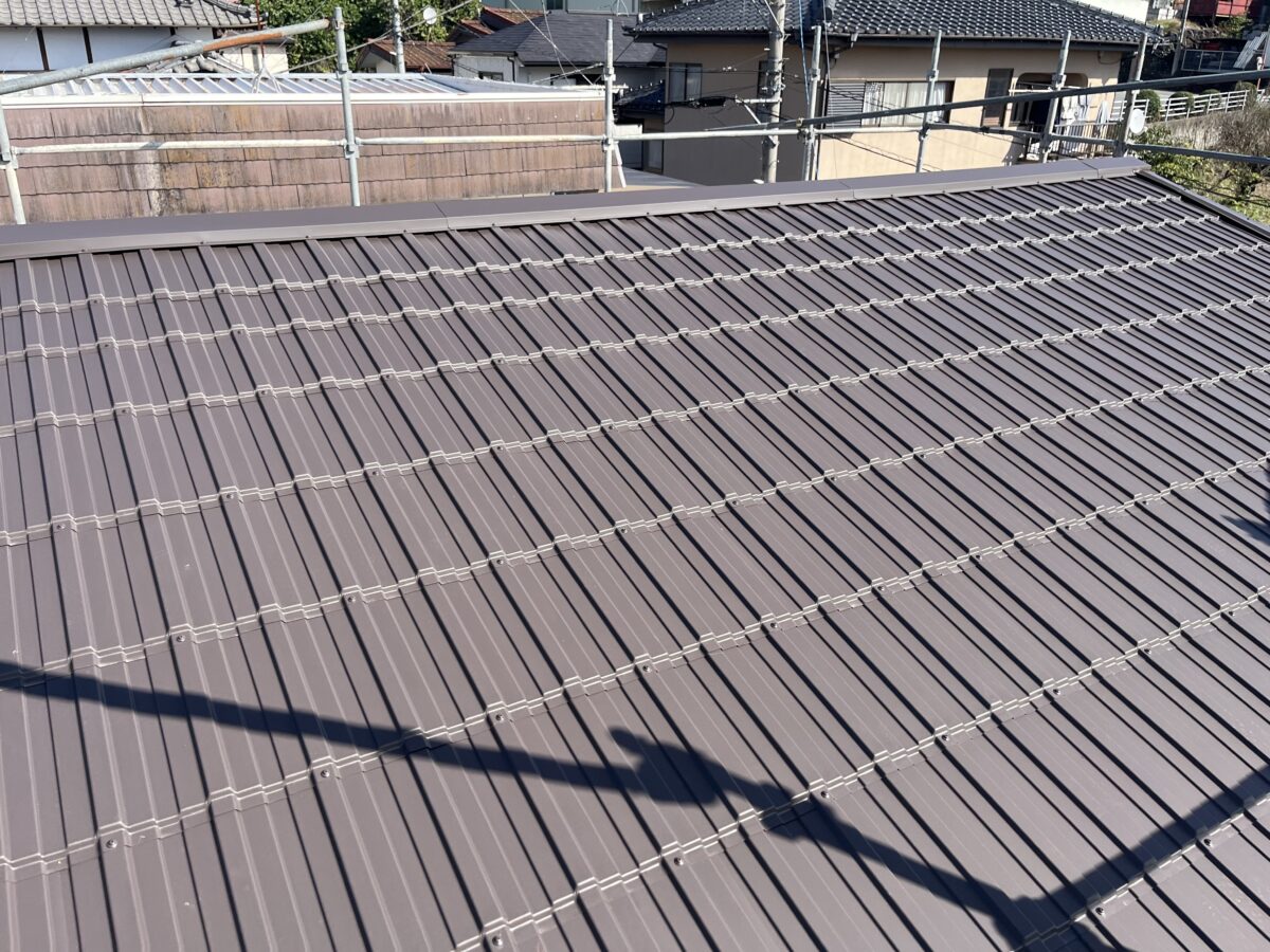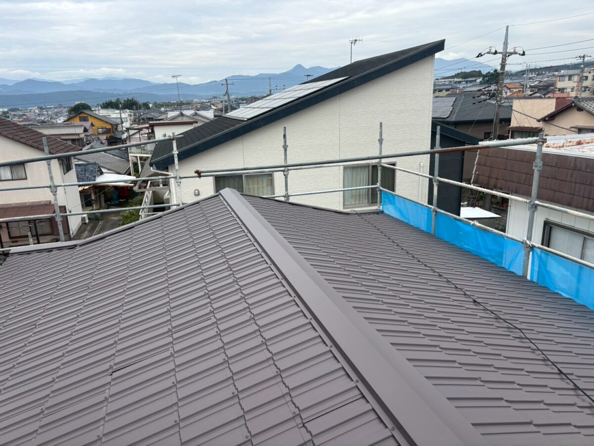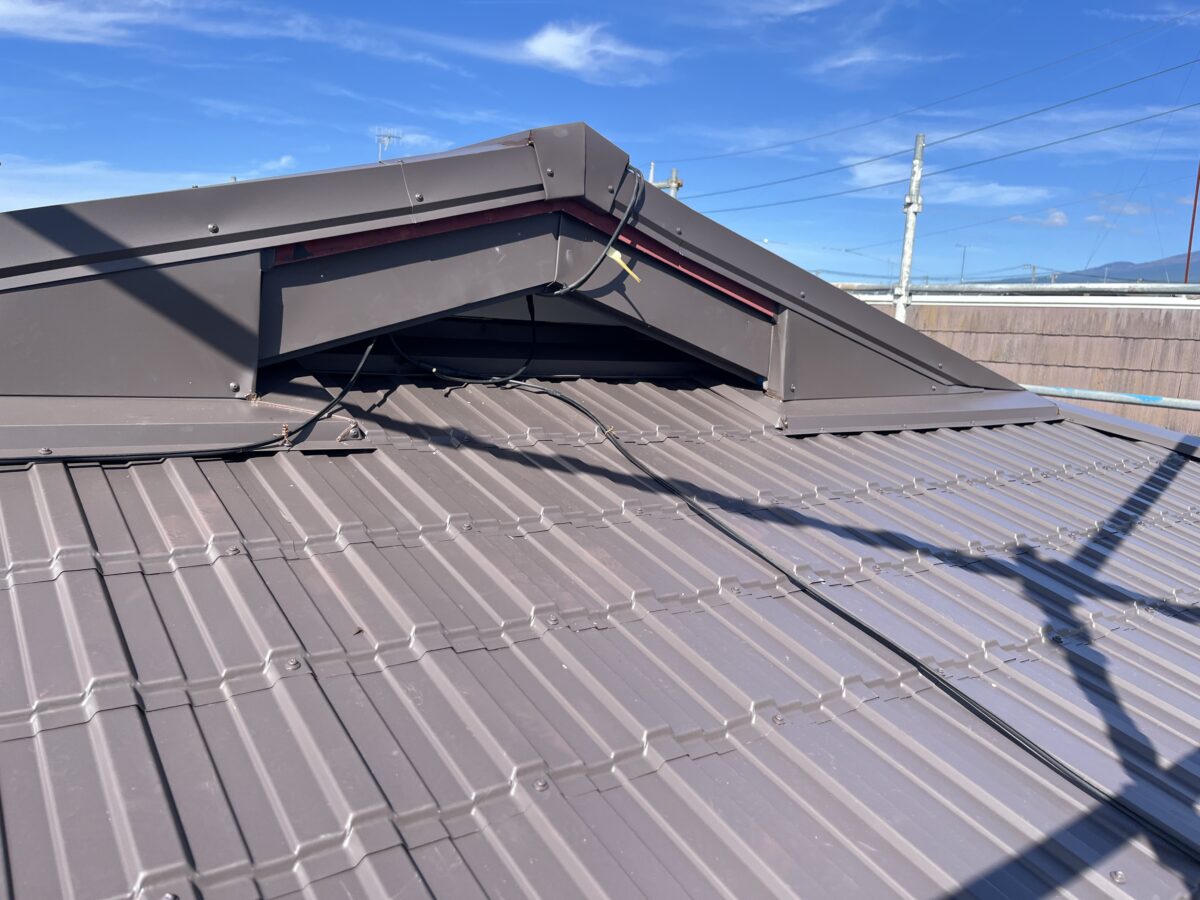 厚みもあり空気層も確保出来るレクトプルーフを施工するとデザイン性から雰囲気がガラッと変わります、表面加工もフッ素塗装なので色褪せにも強く長い間美しい状態をキープ出来ます、ただ残念なのが本体色が茶色と黒の2種類しか無いので選択肢が少ないです、もう一段階金額的に上がるマックスハイプルーフならば4色あるのですが工事費が1割程上がってしまうので、どうしても皆さんレクトプルーフを選択されます。