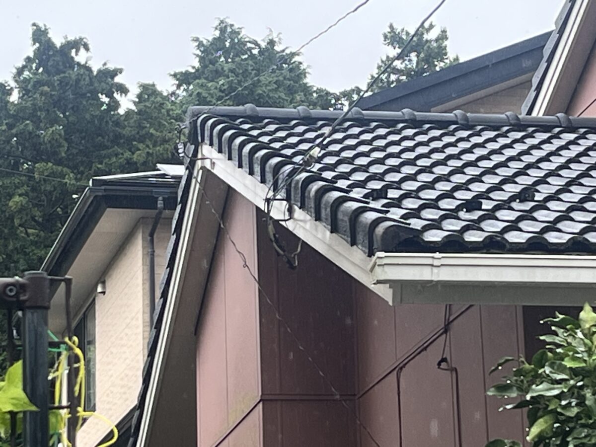 今回コンクリート瓦の2階の屋根の棟がズレてしまい雨漏りしましたので当初は部分的な修理の予定でしたが雨漏りしている箇所のルーフィングの劣化は直らない事のご説明をしたところ、全体的にも割れがあるので全部新しくして欲しいと言う事で全葺き替えとなりました、屋根材はケラバ部分が特に今の屋根と似ているコロナを選択されました。