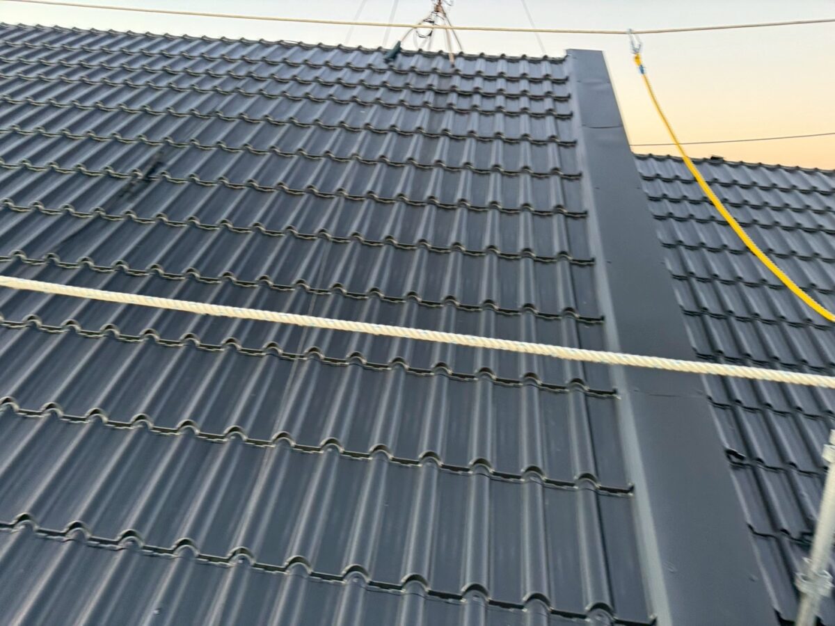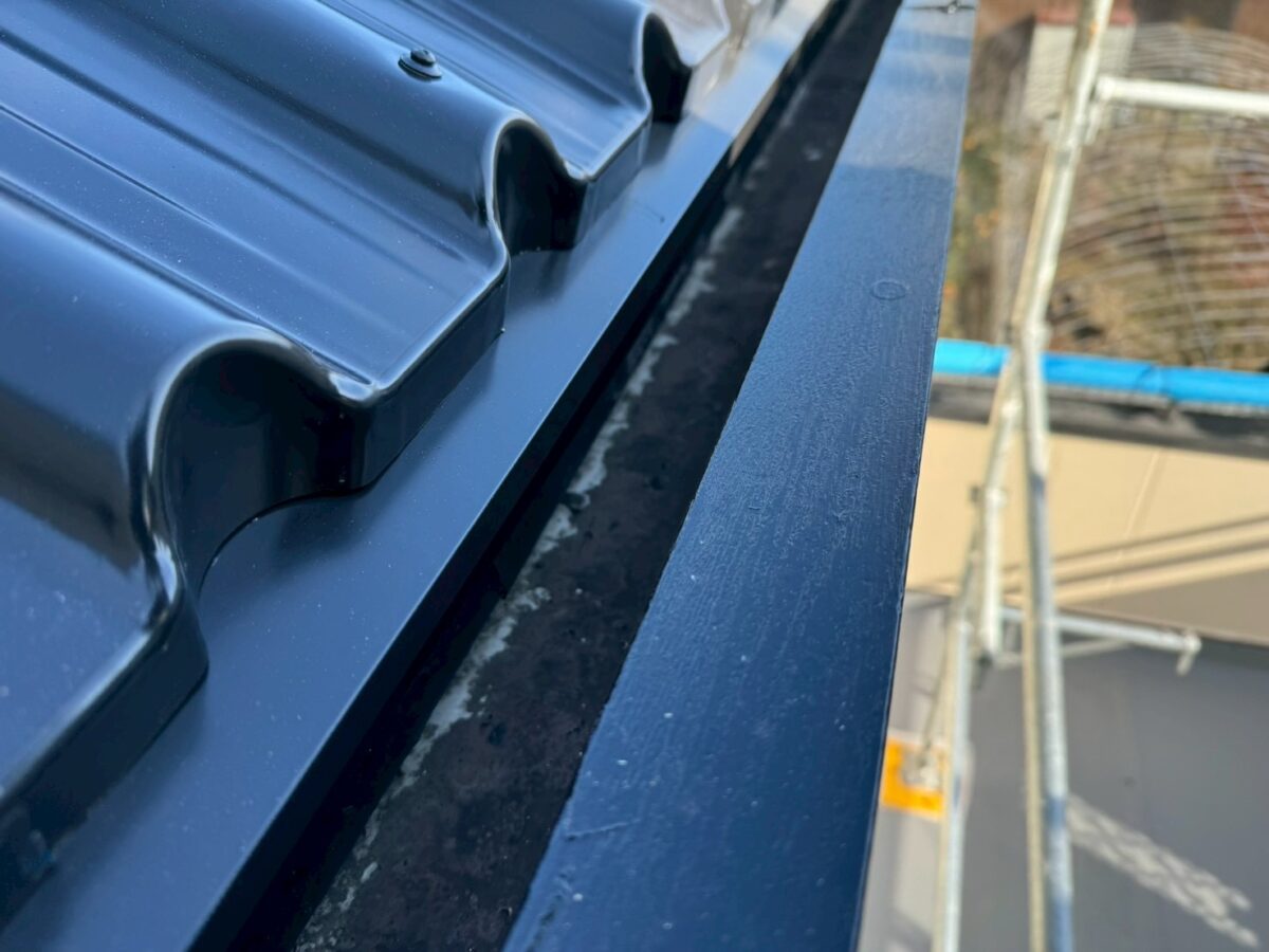 今回初めてマックスハイプルーフを施工するので見た目の感じを凄く楽しみにしていましたが、予想通りとてもカッコいいです!コチラのマックスハイプルーフは、いつも使っているシリーズの上位モデルの為1割程金額的には上がってしまうのですが厚さも0.6mmと通常の商品より厚く表面のフッ素塗装のフッ素の含有率も多いと言うメリットも大きい商品です。