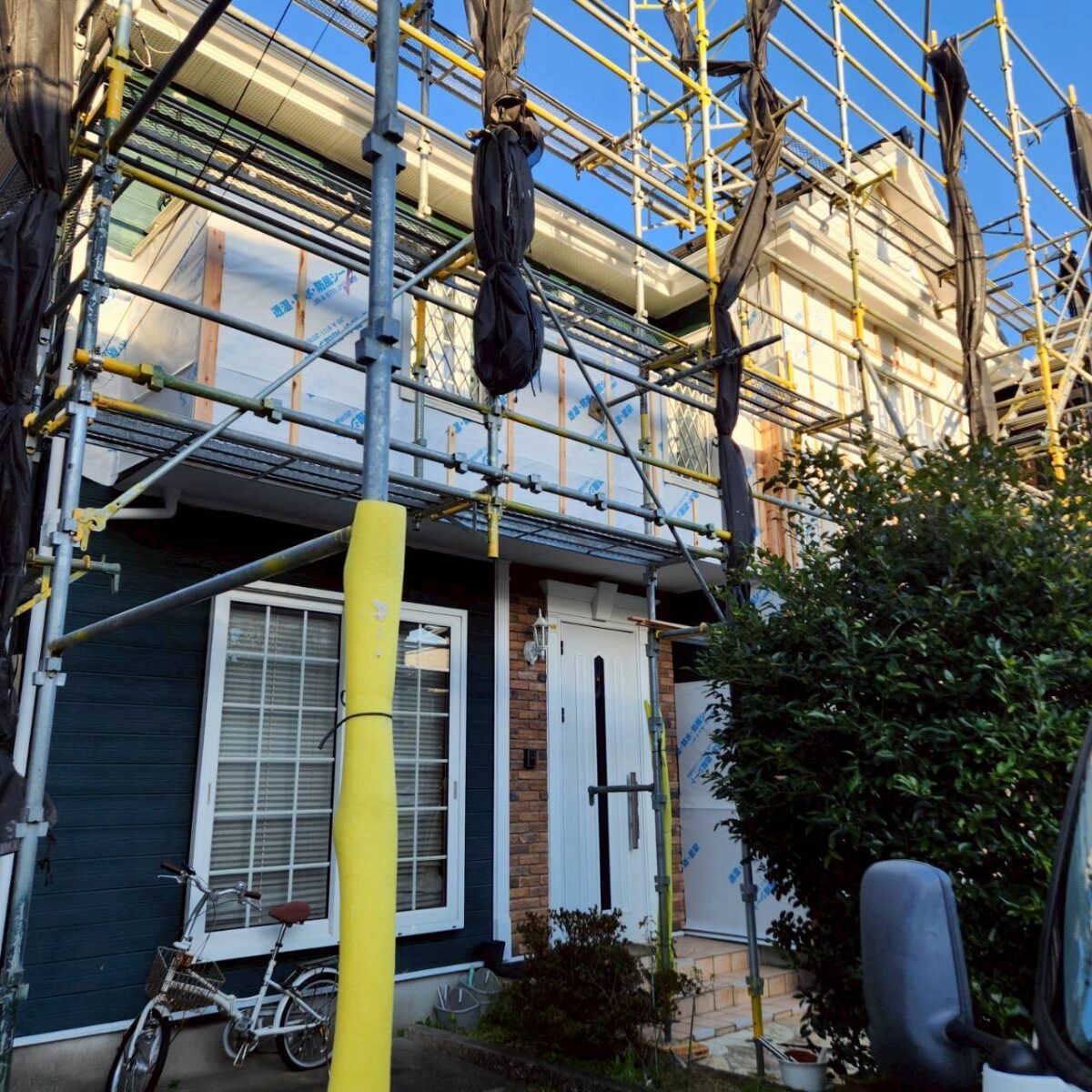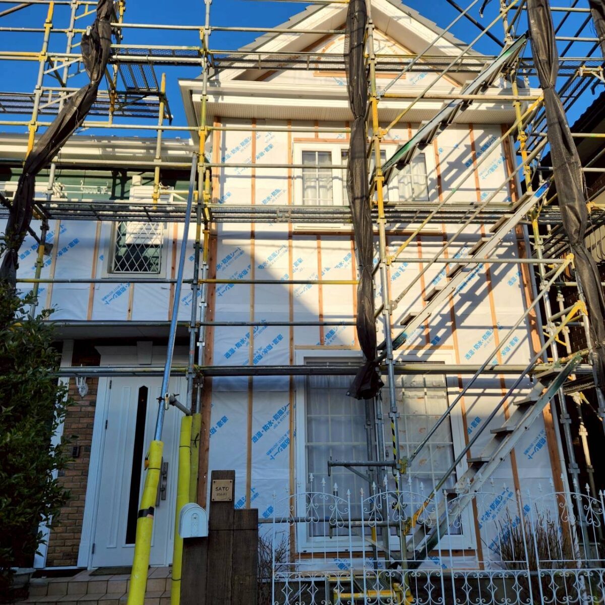 付帯部の塗装が終わり、いよいよ外壁工事のスタートです。