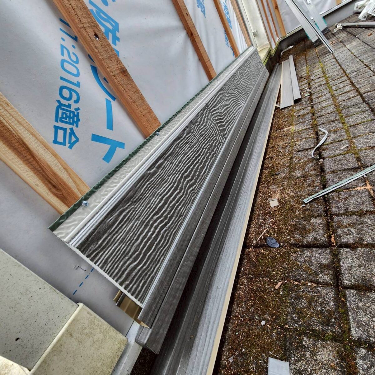 サイディング本体を張る前に、まずは板金役物などの付帯工事を行います。