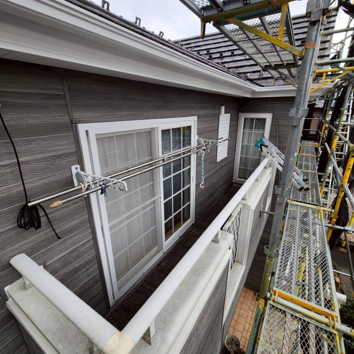 今回は正面のみの施工。そして正面にはバルコニーがあります。