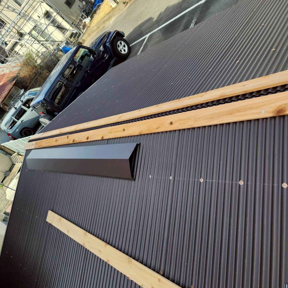 施工後は、鉄板小波の色と連結かさ釘の色も自然に馴染み、違和感のない仕上がりとなりました。