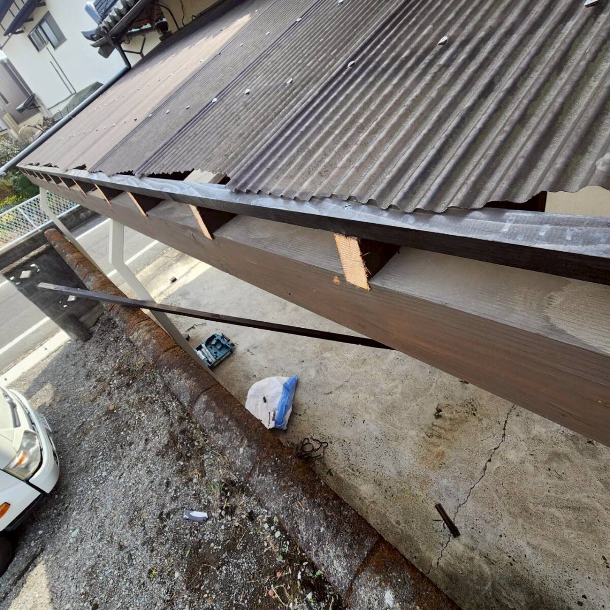 カーポートの工事が終わったあと、追加でご依頼いただいた物置の屋根替え工事を行いました。