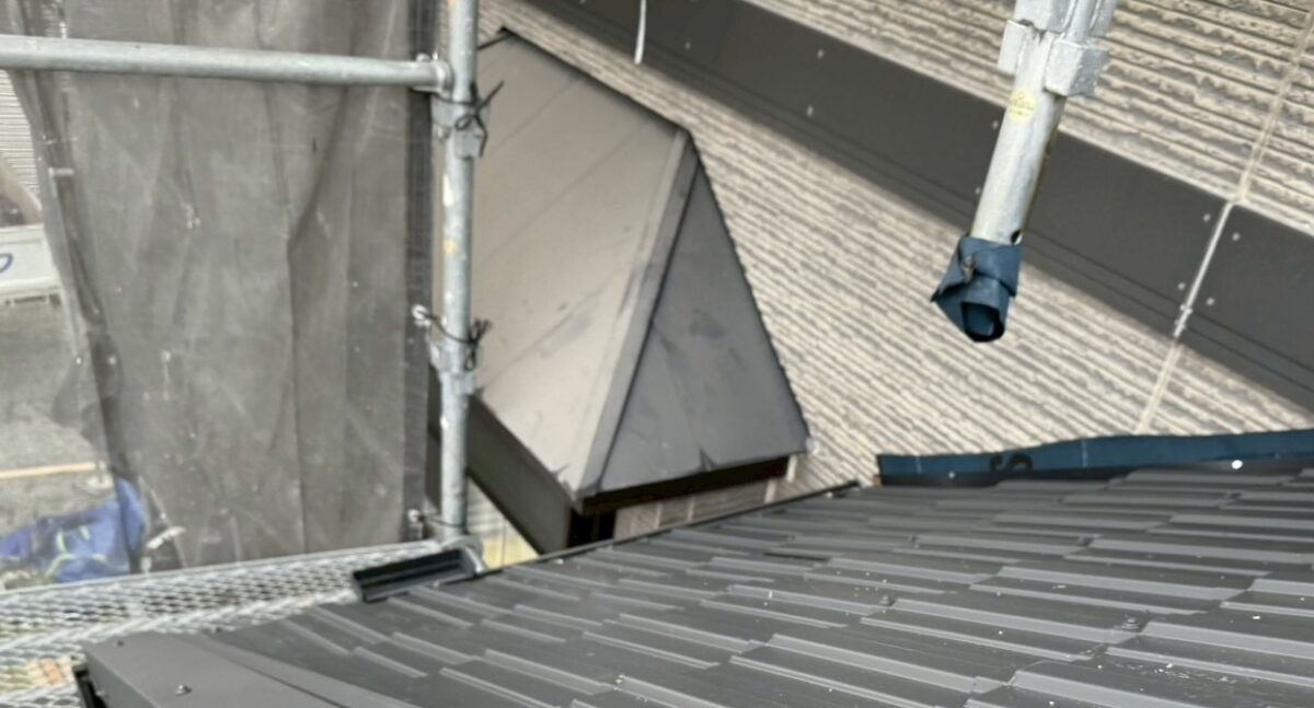 さらに壁際などの取り合い部分についても、板金や役物を使ってしっかり防水処理を行い、きれいに仕上げました。