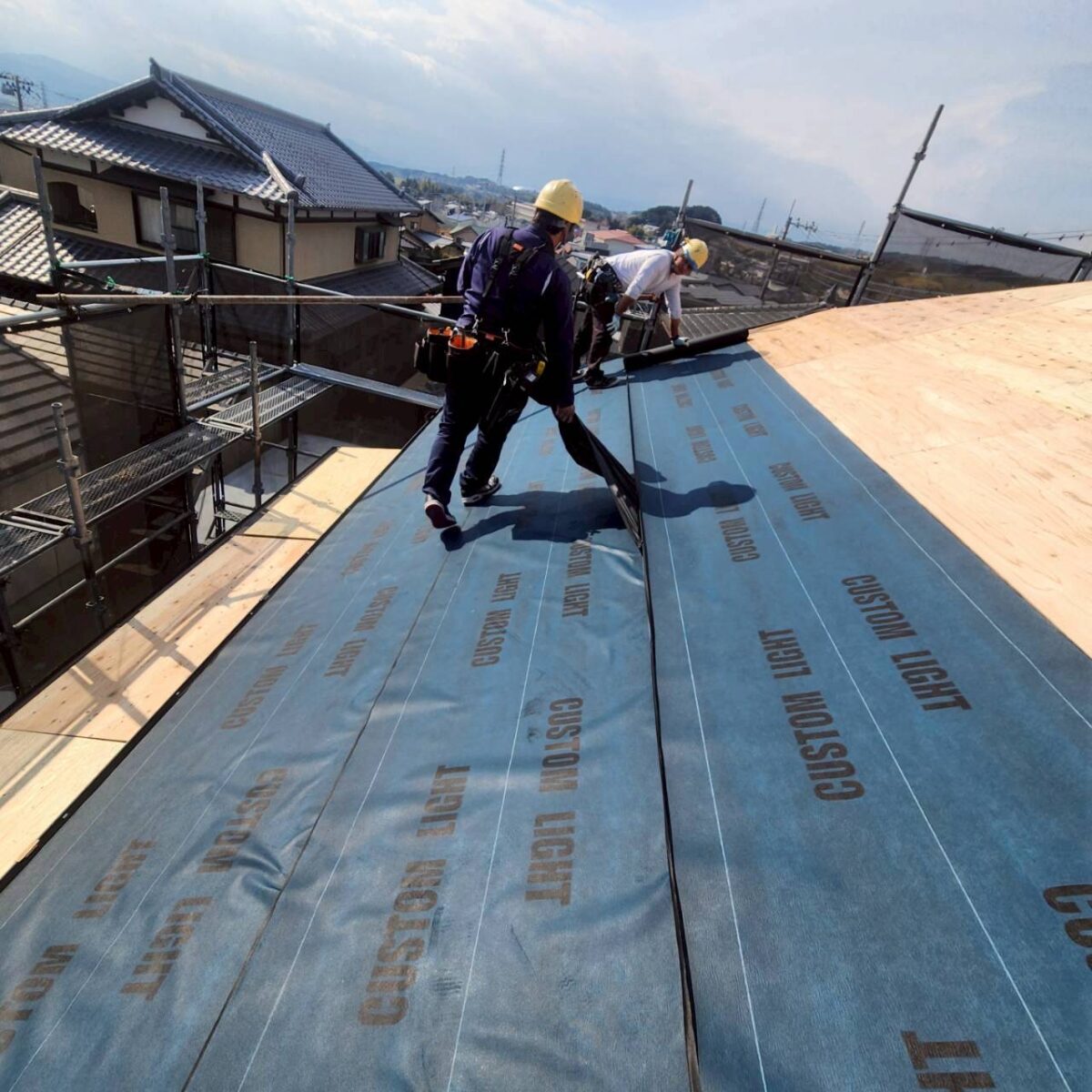さらに今回は下屋根もありましたので、ルーフィングまで仕上げる工程全体では、最終的に2日半ほどかかりました。