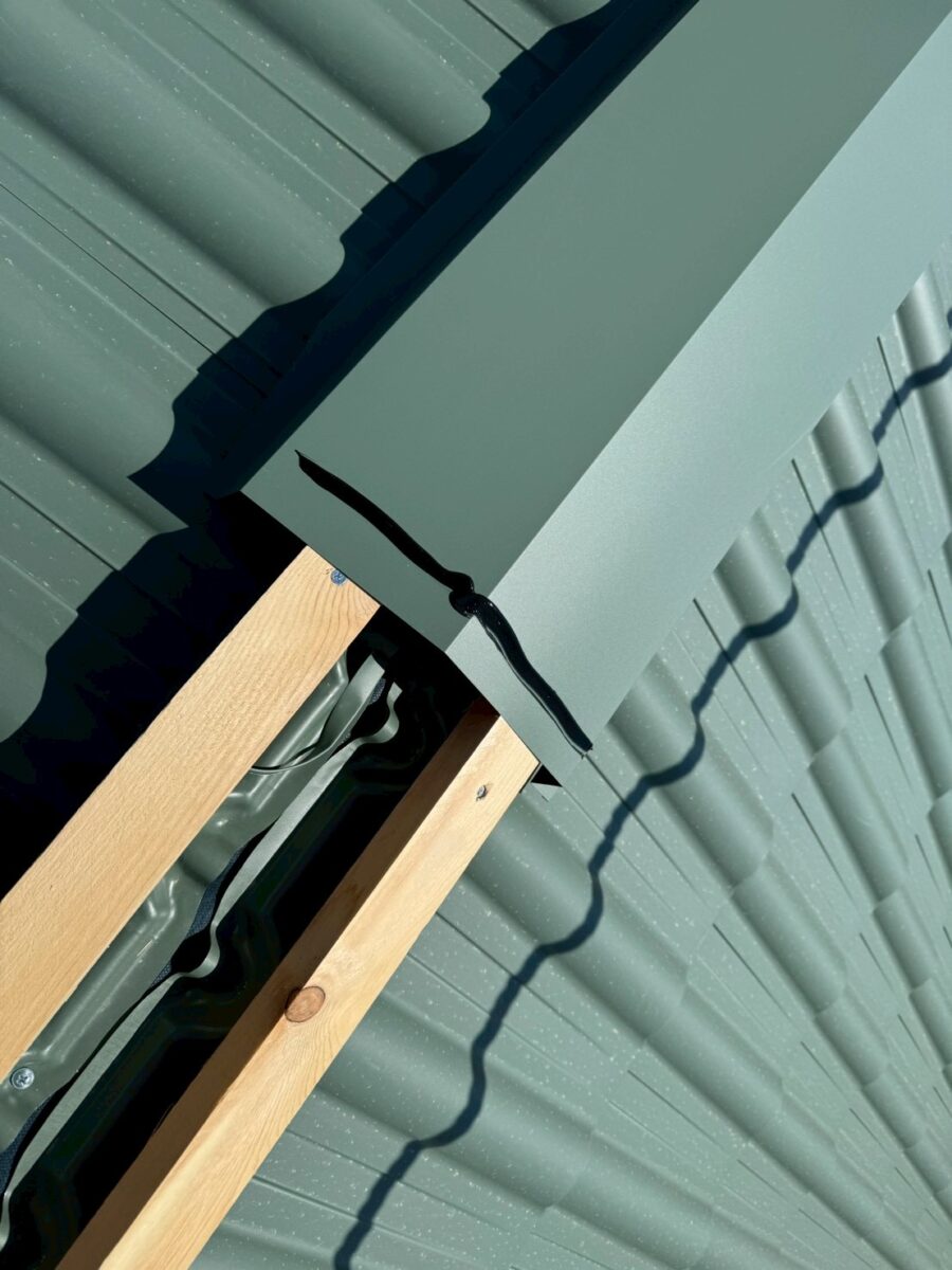 今回の工事で先に取り付ける板金役物は、軒先水切り、棟板金の下地、そしてケラバ下地の捨て板金となります。