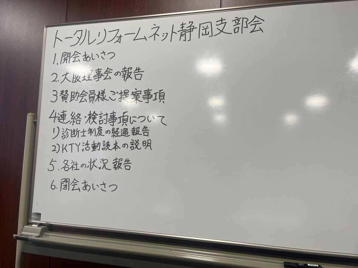 10月9日一般社団法人トータルリフォームネット静岡の支部会が浜松市で開催されました、前日は横浜で2日連続の出席となります、やはり静岡は会場費が安いので横浜よりも安い金額なのに5倍位の広さの会場でゆったりと出来ます、今回のお題は主に小冊子勘違い塗装辞めようの第二弾実践編の出来上がった原稿の読み合わせで出稿車のスルガ住研さんが読み上げ内容に間違いが無いかを確認しました、賛助メーカーさんもLIXILさん晴晴企画さんが出席していただき、とても為になるお話をして頂きました、会議後はいつものように懇親会で盛り上がりました。